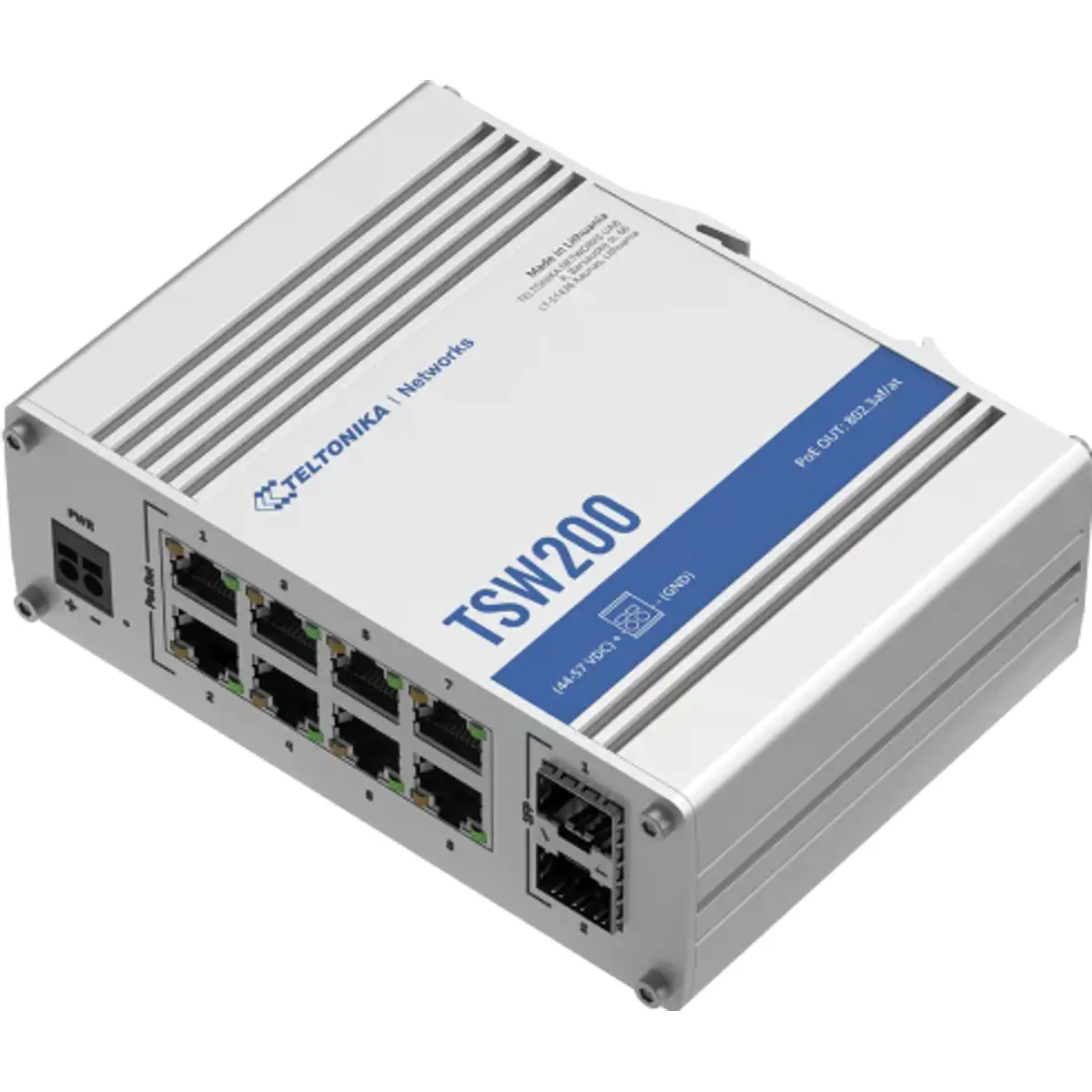 TELTONIKA Networks TSW200 - Switch 8P (8PoE+) Industrial Gigabit 10/100/1000Mbps + 2 SFP para calha DIN