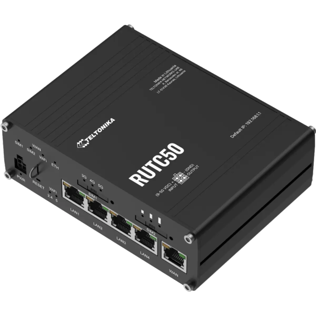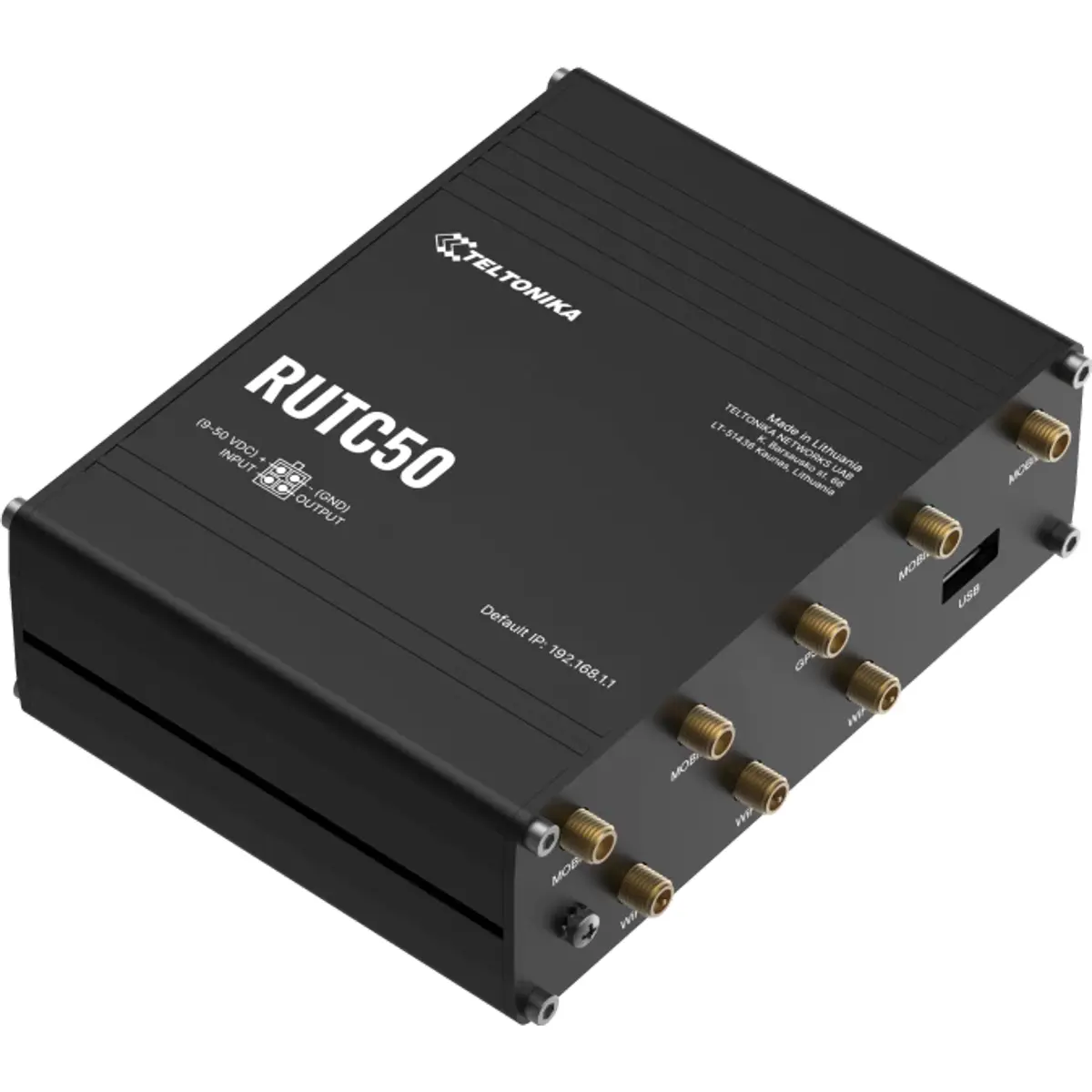 O RUTC50 é um router 5G com tecnologia Wi-Fi 6 de banda dupla e MIMO multi-utilizador, garantindo velocidades ultra-rápidas na rede móvel, de até 3.4 Gbps. Este router 5G também está equipado com dual SIM com comutação automática (auto-failover), cinco portas Ethernet Gigabit e GNSS para rastreamento de localização preciso. O RUTC50 suporta arquiteturas 5G SA e NSA e é retrocompatível com 4G (Cat 20) e 3G, garantindo um desempenho robusto e fiável.