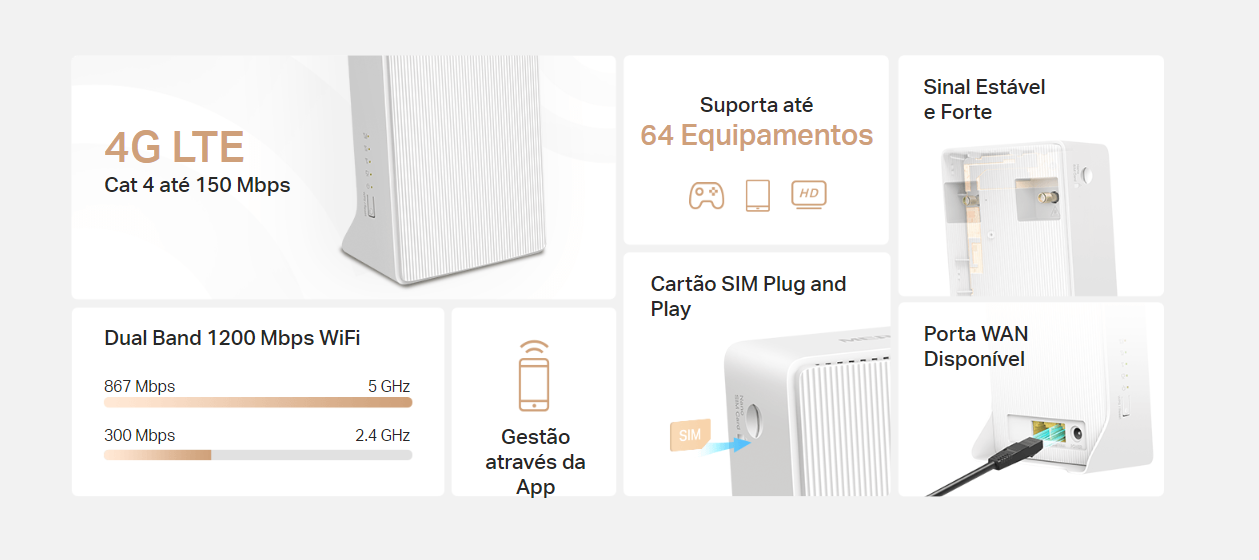 - Rede 4G - Desfrute das velocidades de transferência 4G LTE até 150 Mbps.