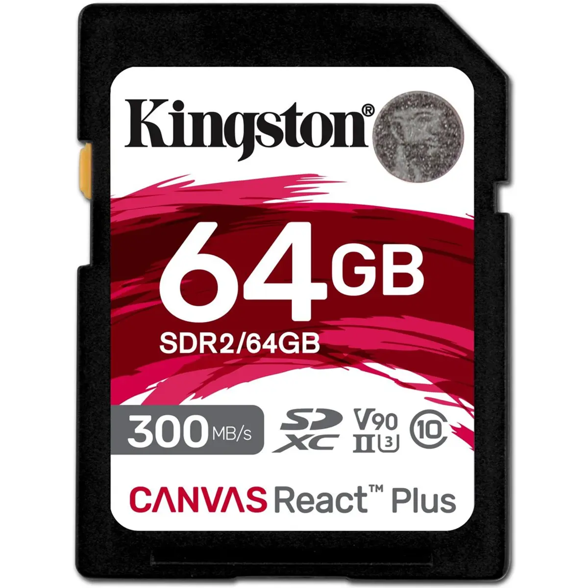 Cartão de Memória SD Canvas React Plus 64GB Classe 10 UHS-II U3 V90 (300MB/s) – Kingston SDR2/64GB