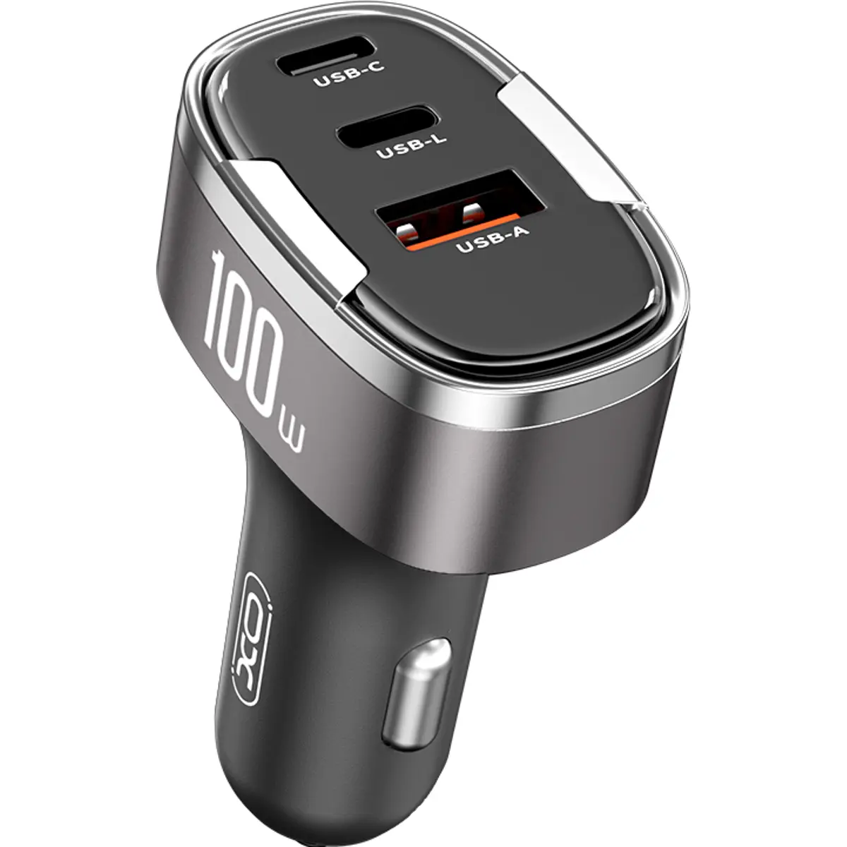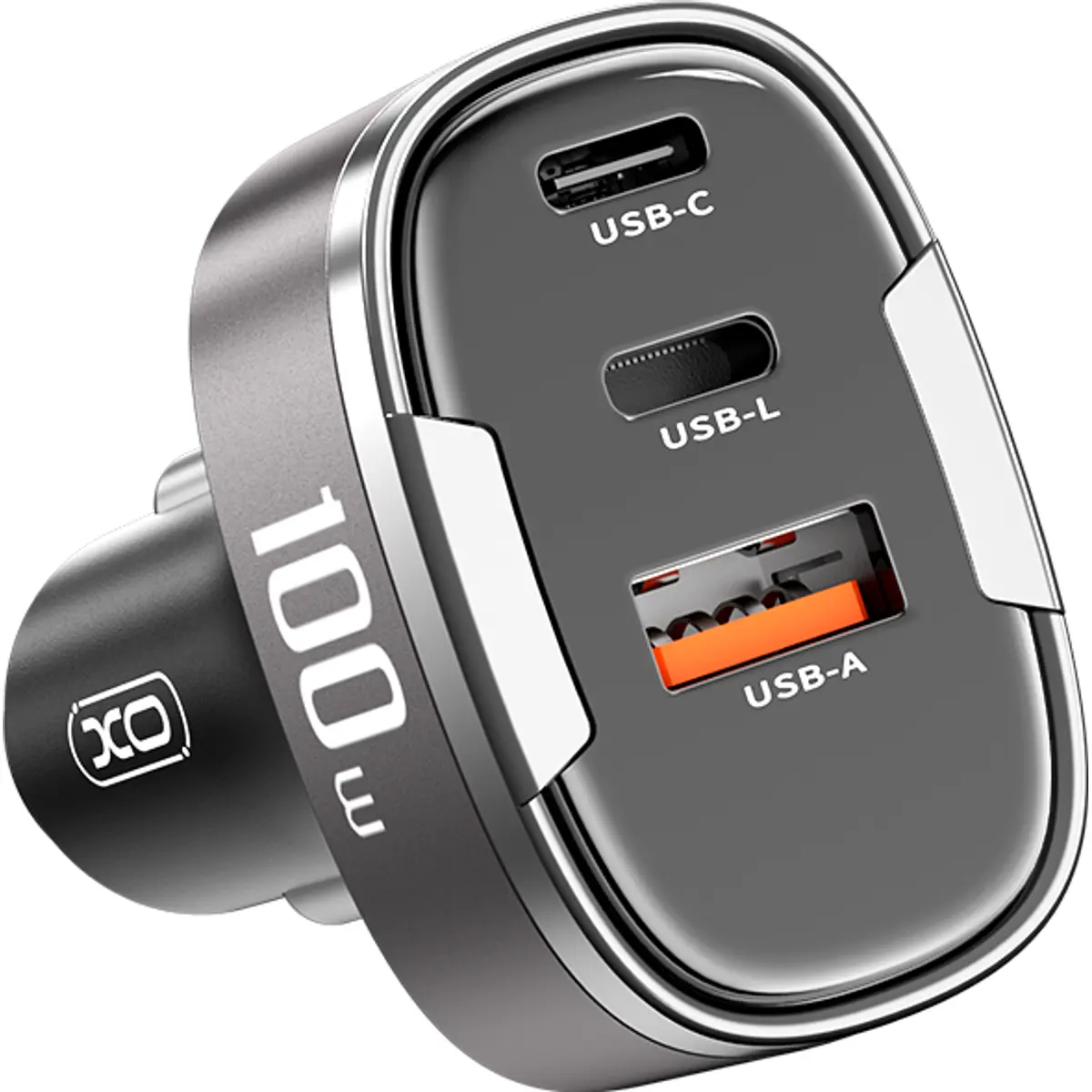 XO CC61 - Carregador de Isqueiro 12-24V 100W - Carga Rápida PD + QC3.0 [USB-A + USB-C + Lightning]