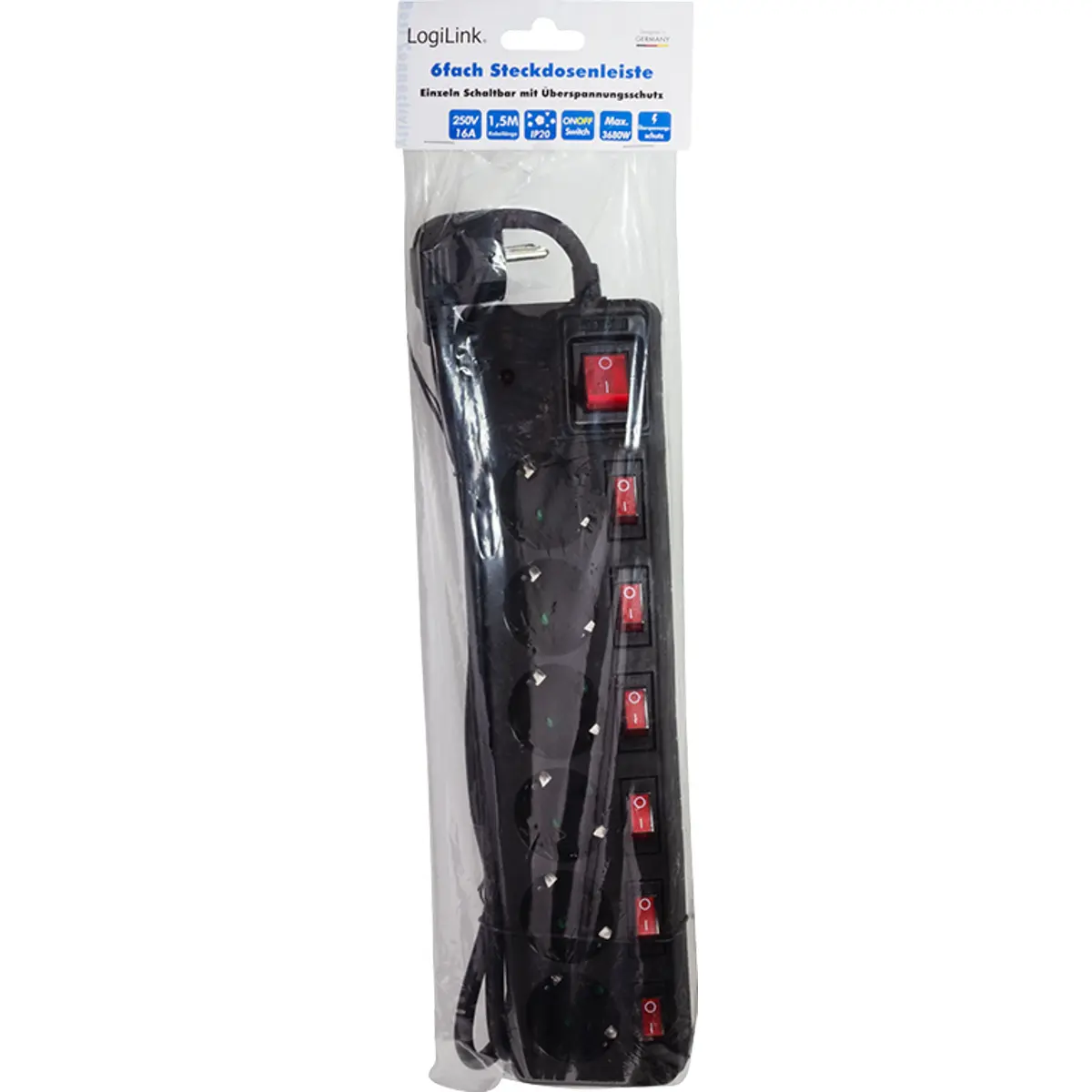 Logilink LPS233 - Bloco de 6 tomadas c/ interruptor individual + geral - cabo (3x1.5mm²) 1.5m