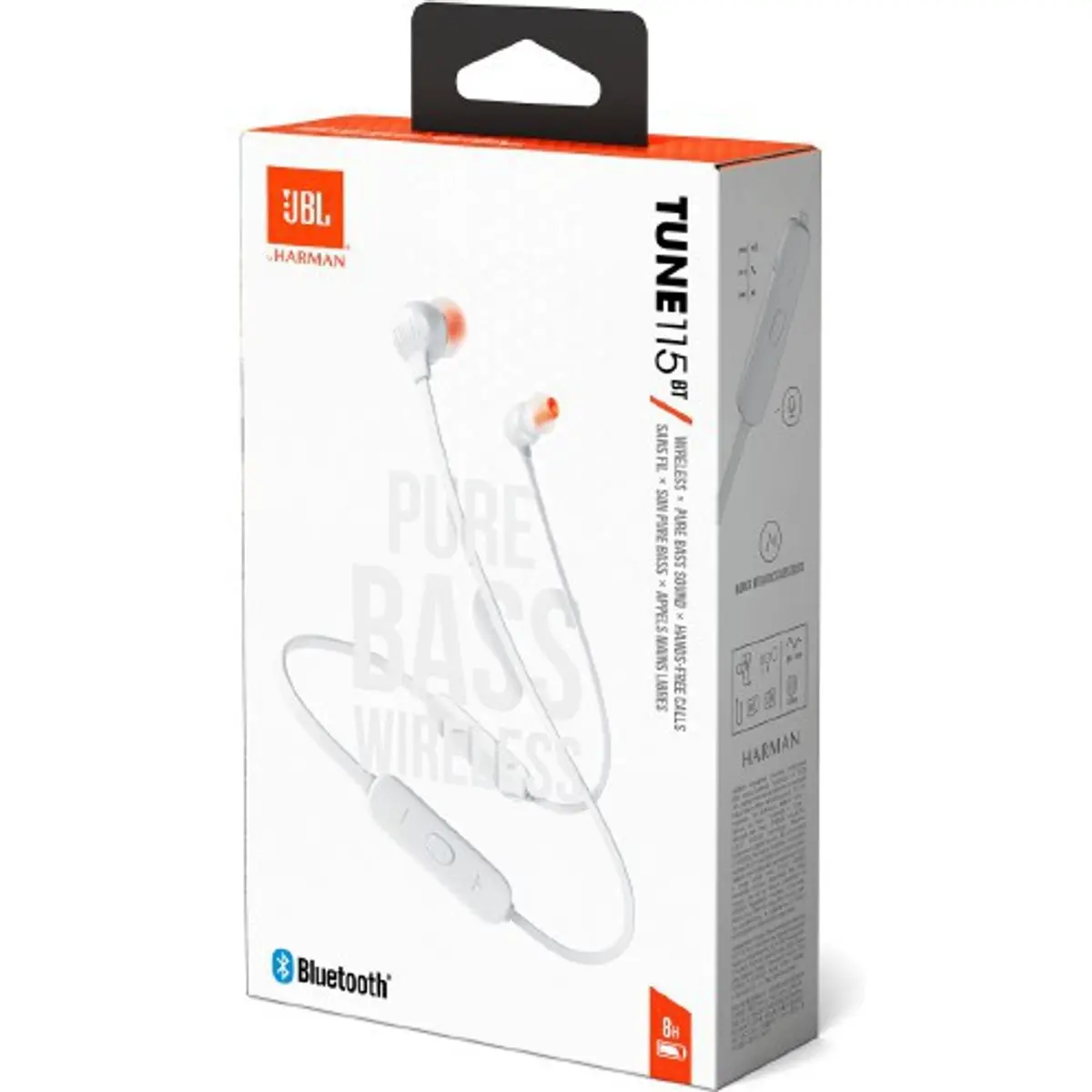 Os auriculares JBL TUNE 125BT, com som JBL Pure Bass, são uma solução sem fios, prática e sem perdas para uso diário, permitindo também atender ou realizar chamadas em modo mãos-livres durante as dez horas de autonomia da bateria.