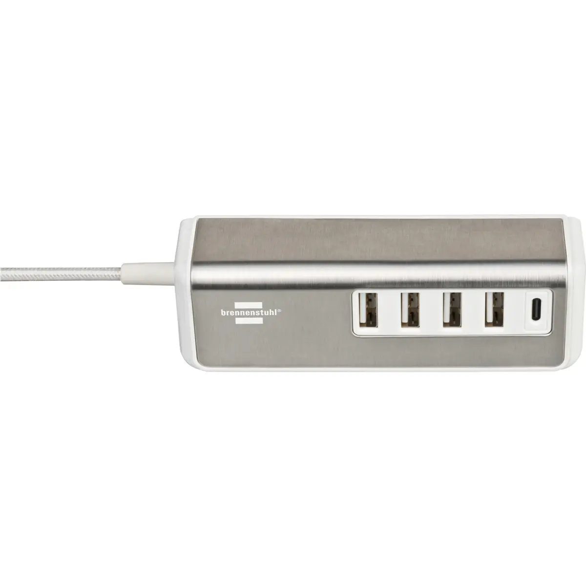 Brennenstuhl - Carregador 4×USB-A + 1×USB-C PD (20W) com estação de secretária e cabo 1.5m