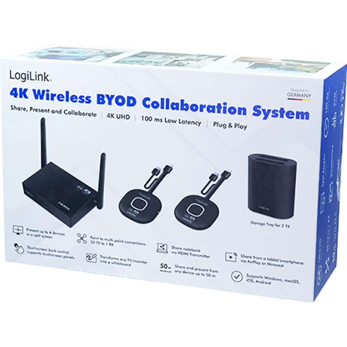 Logilink HDW0112 - Sistema de videoconferência BYOD sem fios all-in-one (2x TX + 1x RX) HDMI 4K - até 50m
