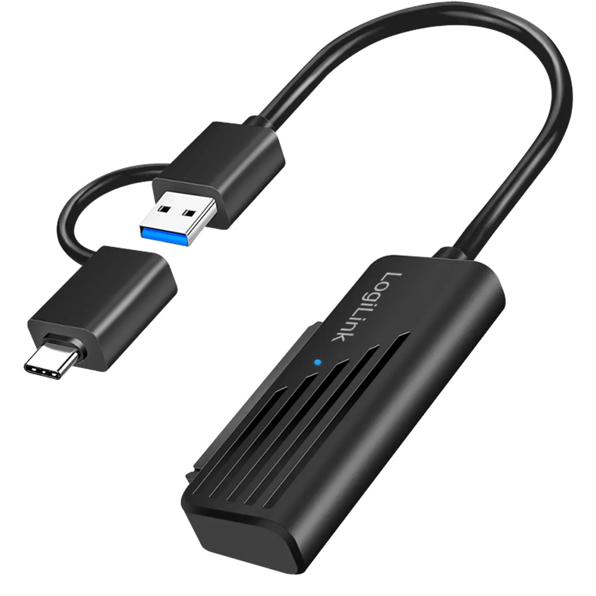 Aceda rapidamente ao conteúdo de discos rígidos ou SSD de 2.5” (até 9,5 mm) com este adaptador versátil com ligação dupla USB-A e USB-C. Compatível com praticamente qualquer dispositivo – computador, portátil, tablet ou smartphone – permite ligações diretas com velocidades até 5 Gbps via USB 3.2 Gen 1. Suporta discos até 10 TB e é compatível com SATA 1.5 Gbps, 3 Gbps e 6 Gbps. Com suporte para hot plug e plug & play, não requer instalação de drivers.