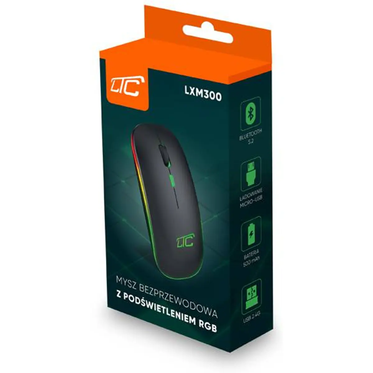 LTC LXM300 - Rato óptico Slim RGB 800/1200/1600DPI Wireless 2.4GHz 4 botões - recarregável (mico-USB)
