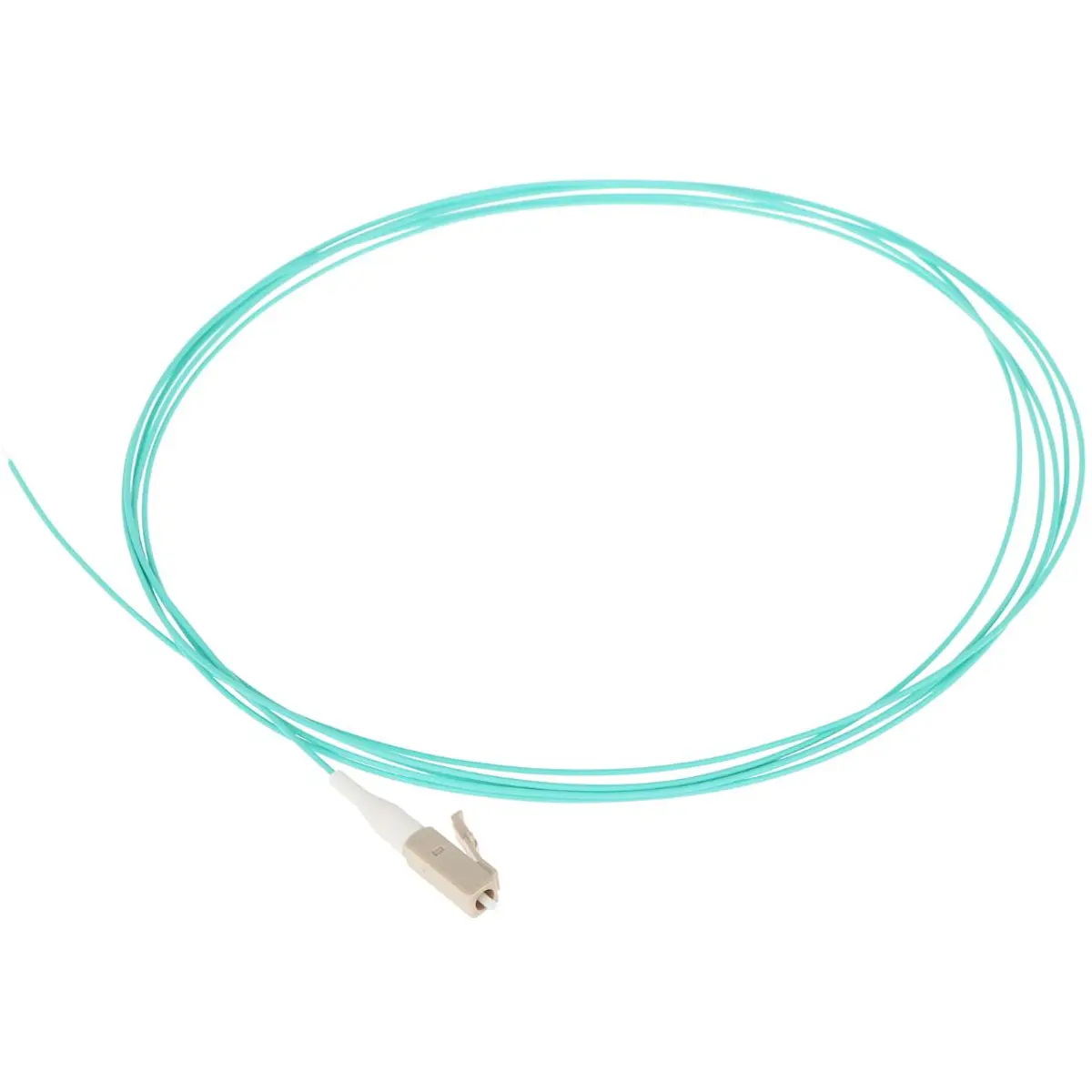Pigtail de fibra óptica multimodo OM3 com conector LC de 2 m para redes rápidas, incluindo Gigabit Ethernet. Possui atenuação de 0,08 dB no conector e atenuação da fibra de 2,8 dB/km a 850 nm e 0,8 dB/km a 1300 nm. Compatível com IEC, EIA/TIA e Telecordia, ideal para ligações internas estáveis e fiáveis.