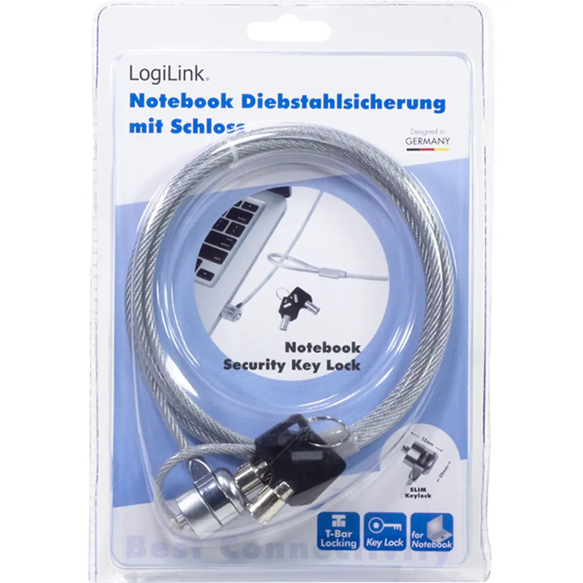 Logilink NBS003 - Cadeado com cabo de aço 1.5m para computador portátil com 2 chaves