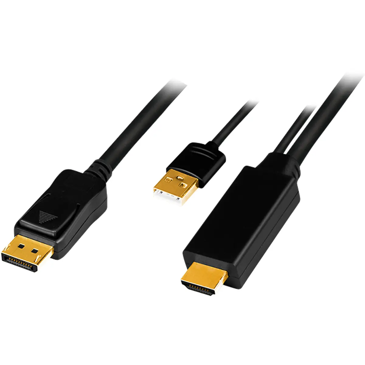 Logilink CH0091 - Cabo adaptador HDMI macho (4K/30Hz) c/ alimentação USB ➝ DisplayPort 1.2 (DP) - 2.0m