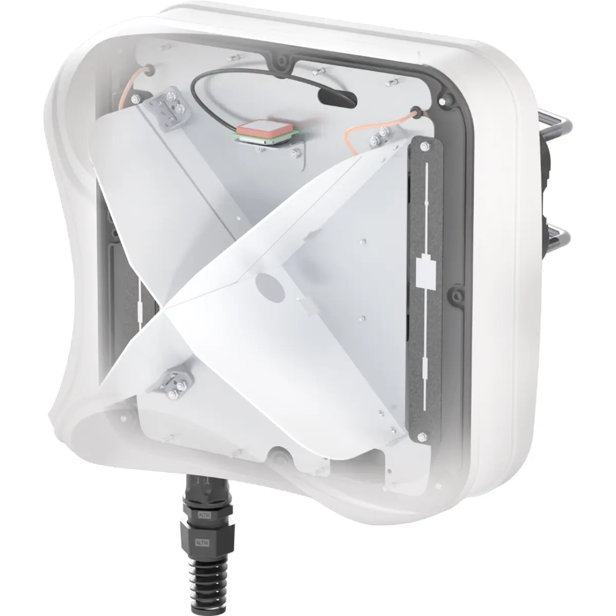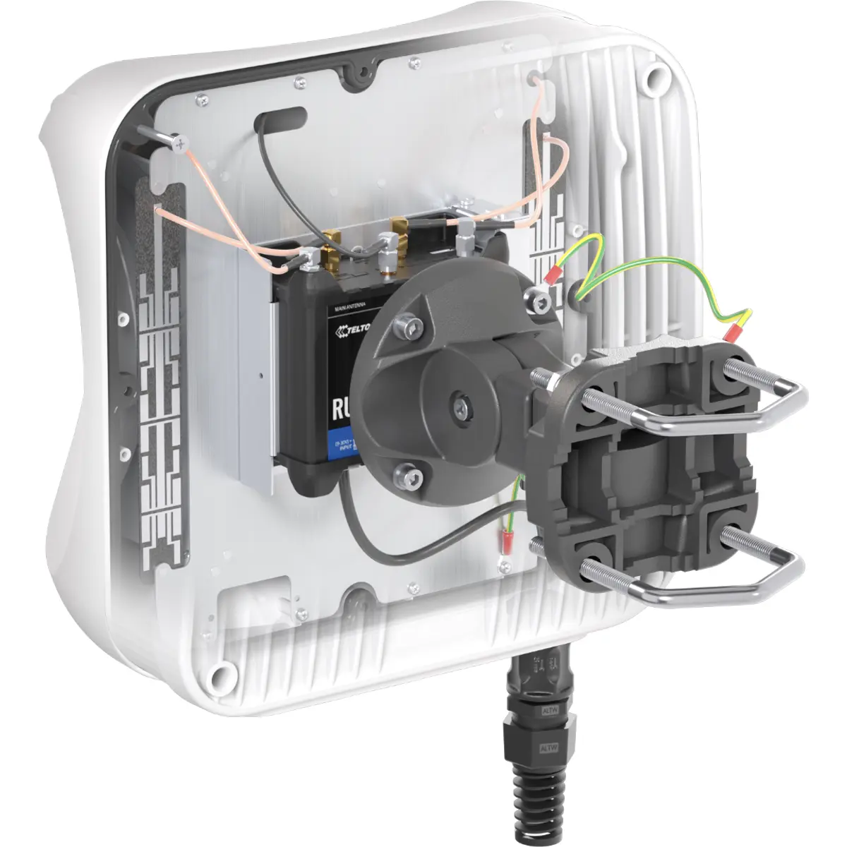 Ao integrar o router diretamente no interior do invólucro, elimina-se a necessidade de longos cabos coaxiais, reduzindo perdas de sinal e aumentando significativamente a fiabilidade da ligação.