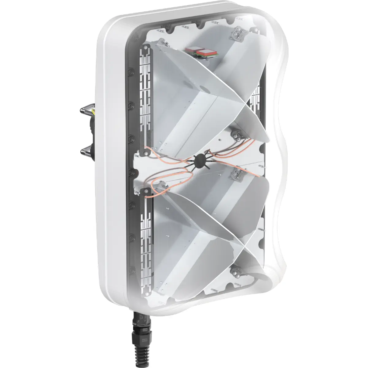 A QuMax AC50M é uma antena direcional multibanda 5G de alto desempenho, desenvolvida especificamente para o router Teltonika RUTC50. Esta solução tudo-em-um combina antenas LTE/5G direcionais, Wi-Fi 6E omnidirecional, GPS ativo e uma caixa estanque IP68 com compartimento integrado para instalação do router, oferecendo uma solução exterior robusta, compacta e pronta a instalar.
