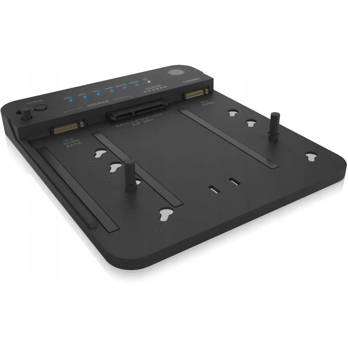 A ICY BOX IB-2913MCL-C31 é uma estação de acoplamento e clonagem versátil para SSDs M.2 NVMe e discos SATA de 2,5"/3,5". Permite clonar dados entre diferentes tipos de unidades, incluindo clonagem direta de SATA para M.2 PCIe NVMe, sem necessidade de ligação ao computador. Com design sem ferramentas e ligação USB 3.2 Gen 2, garante transferências rápidas até 10 Gbit/s e uma utilização simples e eficiente.