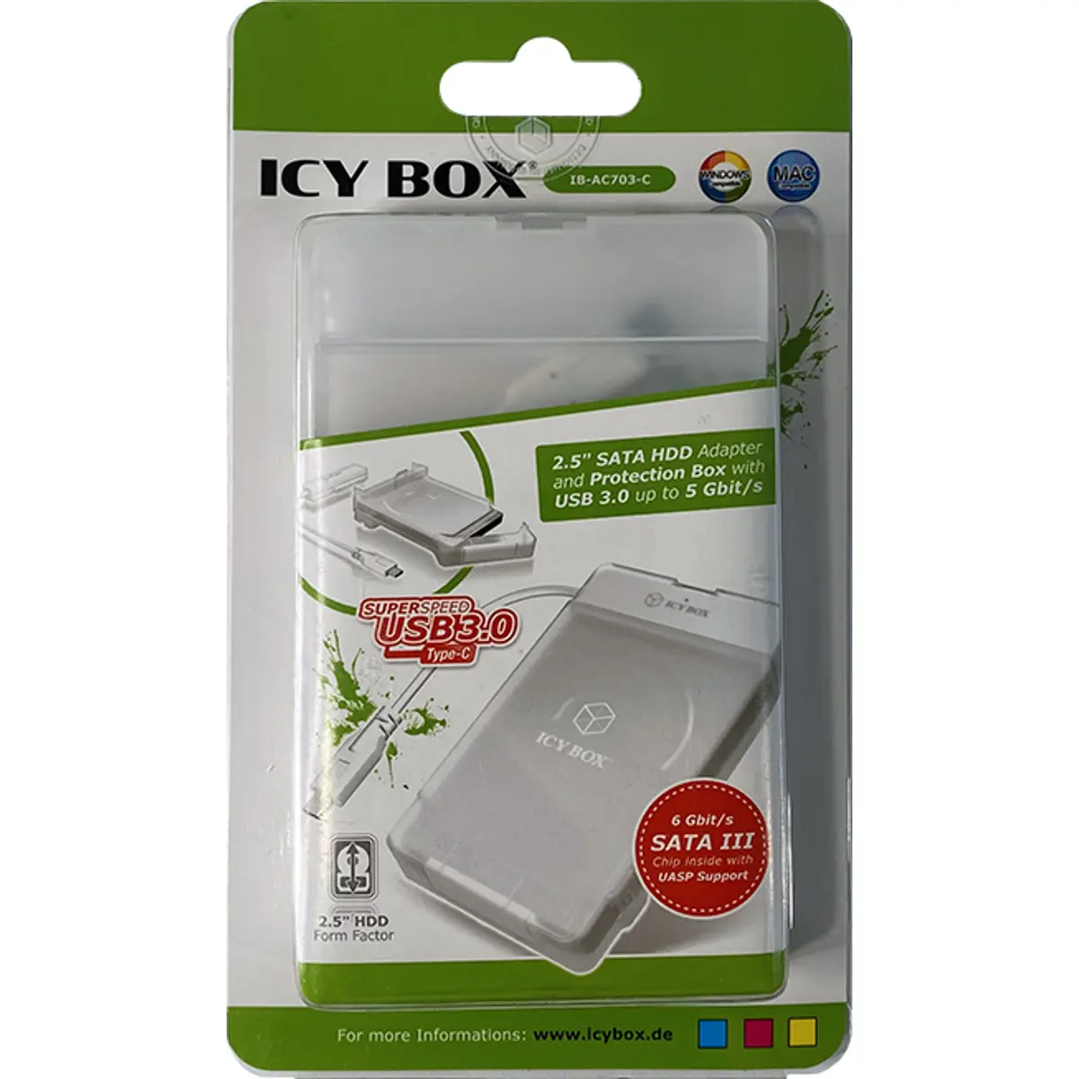 O ICY BOX IB-AC703-C é um adaptador USB 3.0 Type-C para discos de 2,5" SATA, ideal para ligação rápida de HDDs ou SSDs a dispositivos modernos com porta USB-C. Inclui uma caixa de proteção que pode ser usada durante o funcionamento ou simplesmente para armazenamento do disco. Suporta Hot Swap, Plug & Play e velocidades até 5 Gbit/s com UASP.