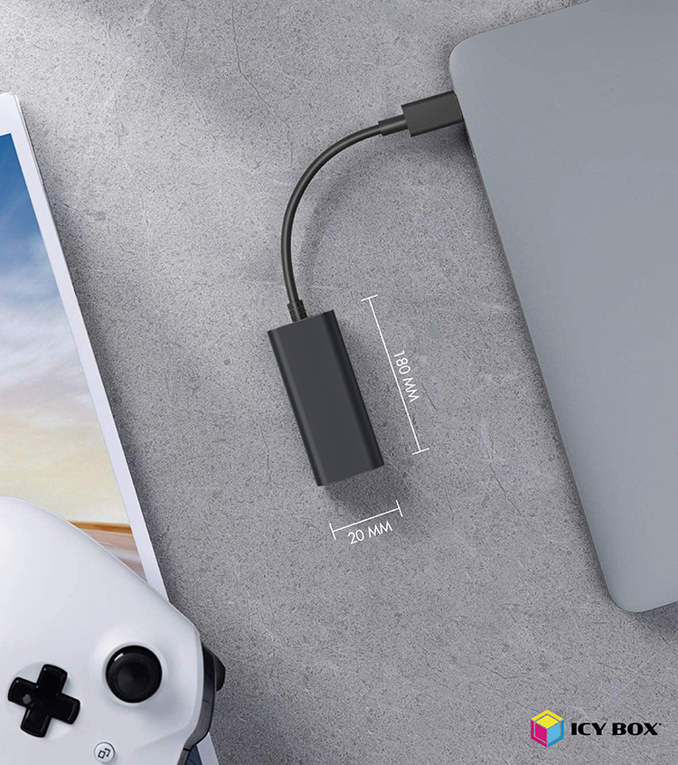 O ICY BOX IB-AC501a é um adaptador compacto que permite ligar computadores com porta USB a redes Ethernet com velocidades até 1000 Mbit/s. É ideal para dispositivos sem porta RJ-45 integrada, proporcionando uma ligação de rede estável e rápida. Compatível com USB 3.0 e versões anteriores, suporta Jumbo Frames e é fácil de transportar.