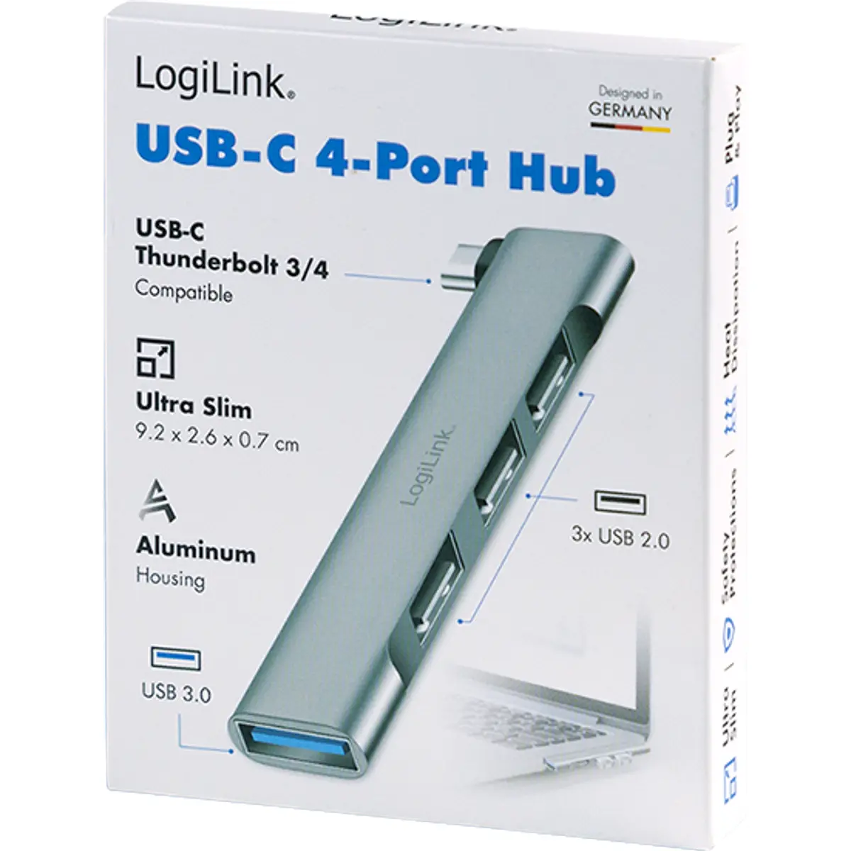 Logilink UA0437 - HUB USB-C 18W Ultra-Slim c/ 4 portas (1x USB 3.0 + 3x USB 2.0)