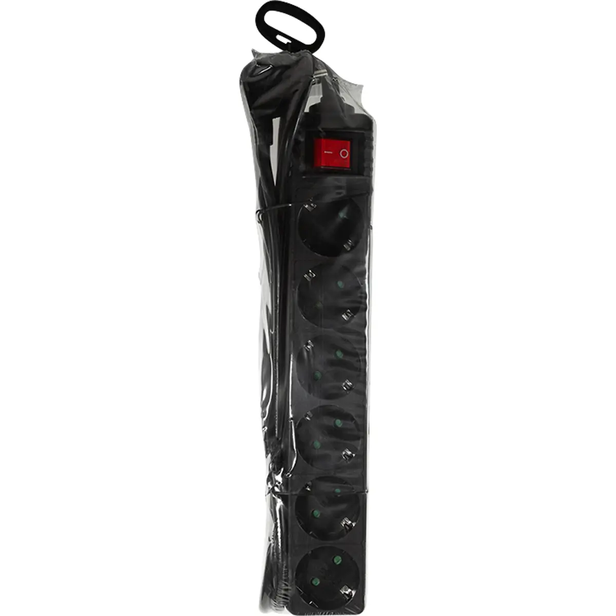 Bloco de tomadas com seis tomadas de segurança e interruptor ON/OFF iluminado. As tomadas são posicionadas a 45° e equipadas com obturador de segurança, oferecendo proteção contra objetos sólidos e contacto com dedos. Compatível com rede de 230 V/16 A, 50 Hz, máx. 3500 W. Especificação do cabo: H05VV-F 3G 1,5 mm²; comprimento 1,5 m. Cor: Preto. Ideal para uso em escritório, casa ou local de trabalho.