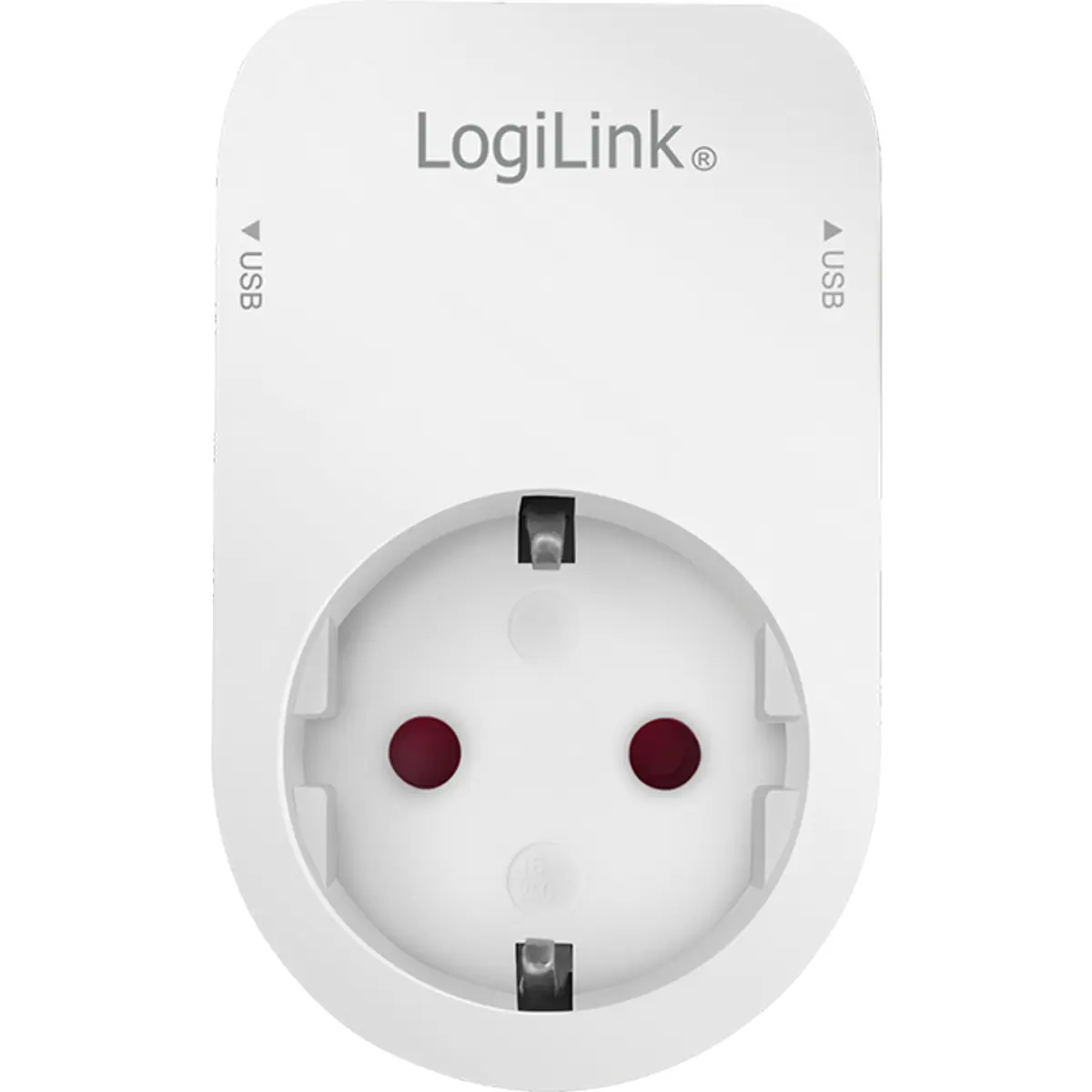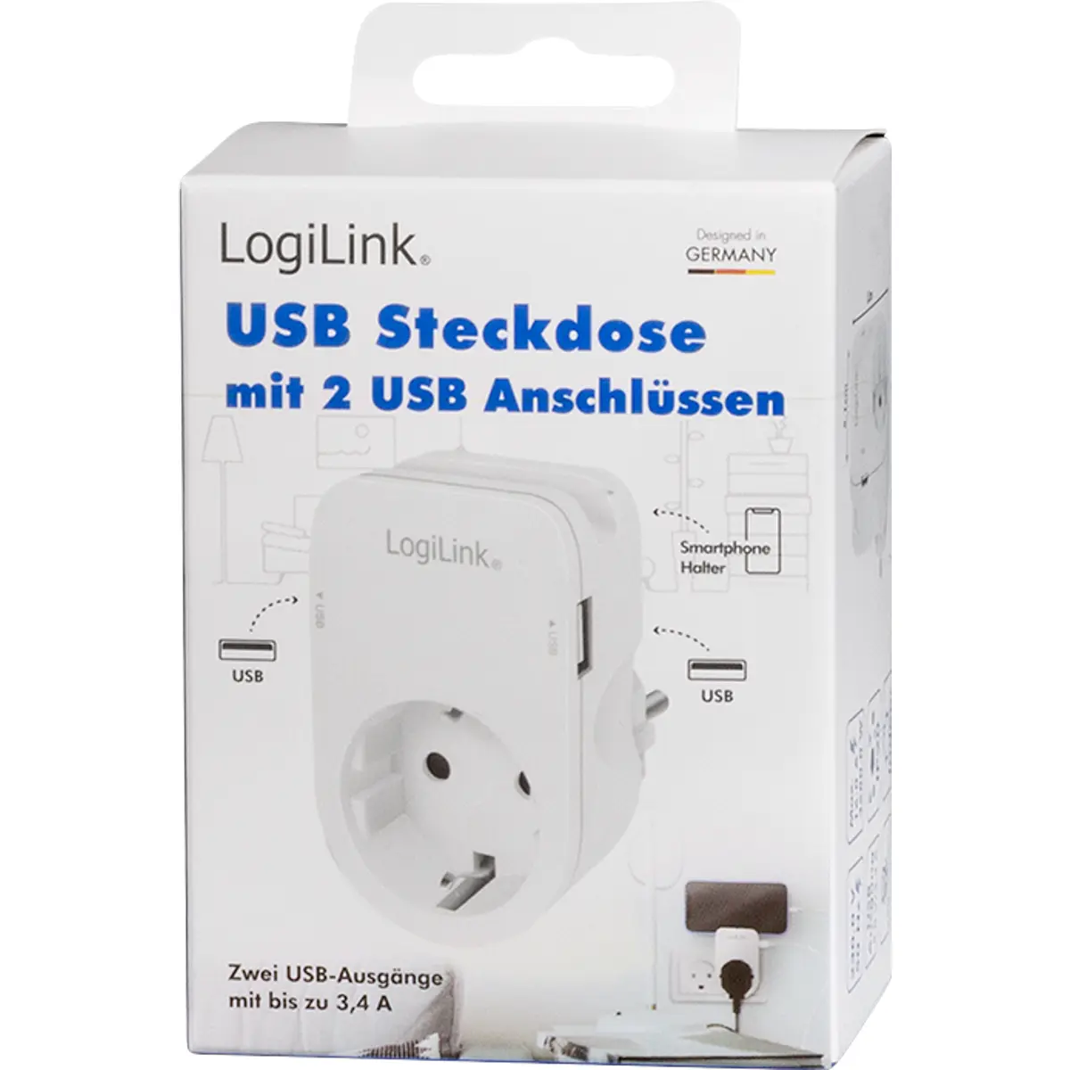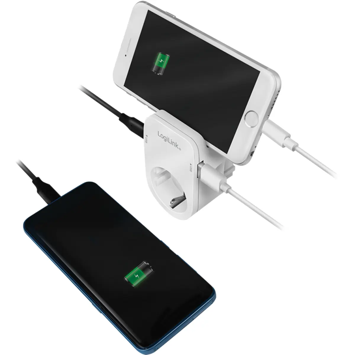 Logilink PA0247 - Tomada Schuko pass-through c/ Suporte de telemóvel + 2xUSB-A