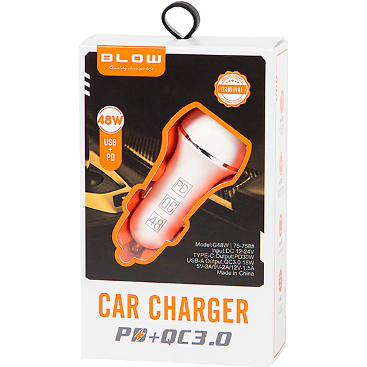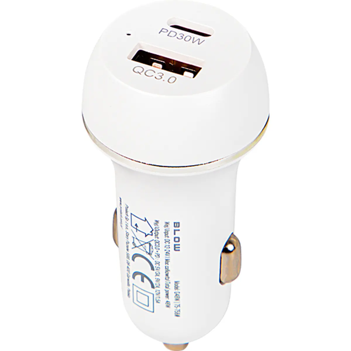 Blow G48W - Carregador de Isqueiro (12..24VDC) USB-C PD30W + USB-A QC3.0