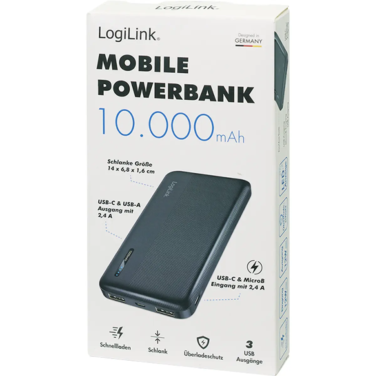 Logilink PA0338RF - Powerbank 10.000mAh 12W (2x USB-A + 2x USB-C) c/ LCD de estado de capacidade