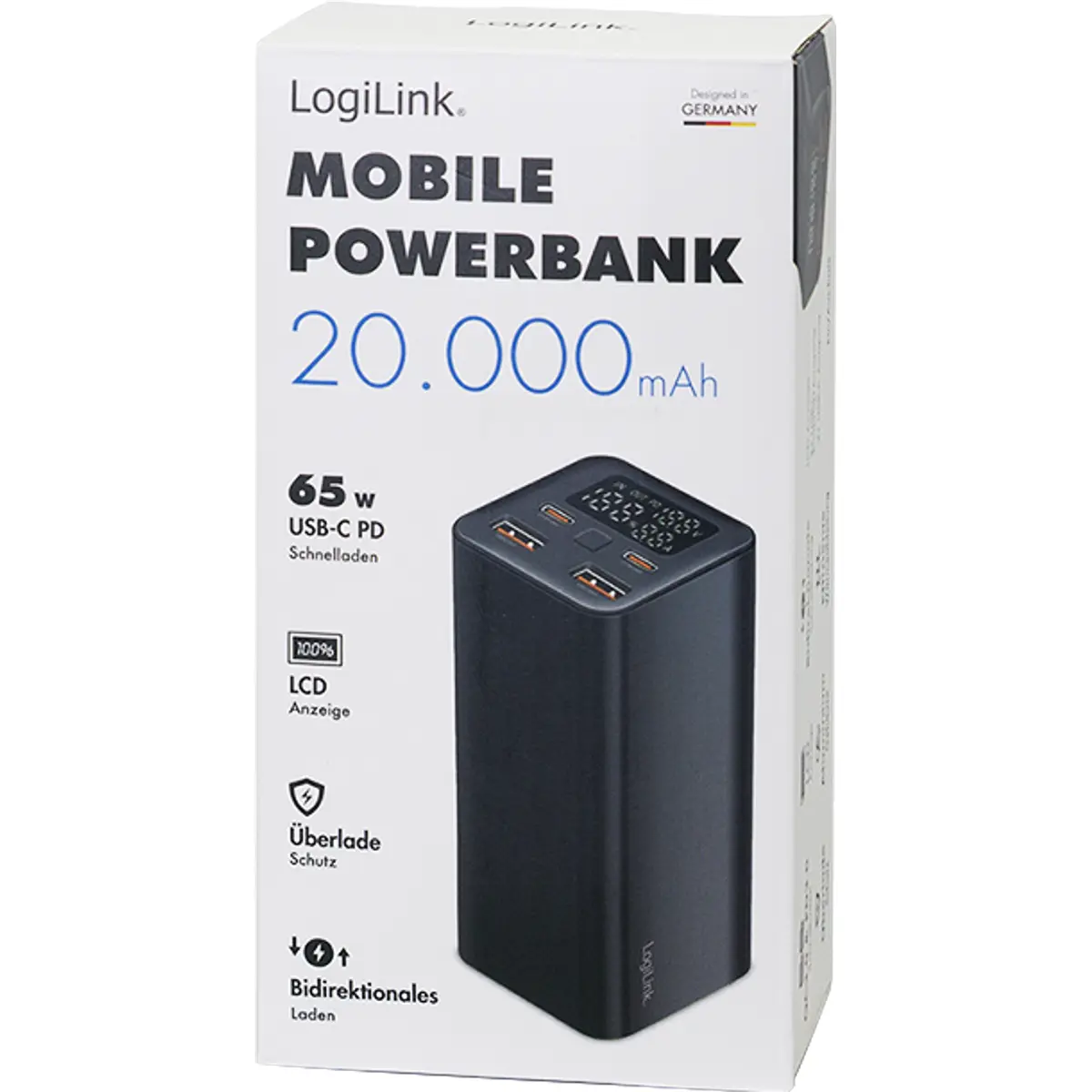 Logilink PA0350 - Powerbank 20.000mAh 65W QC/PD 3.0 (2x USB-A + 2x USB-C) c/ ecrã LCD