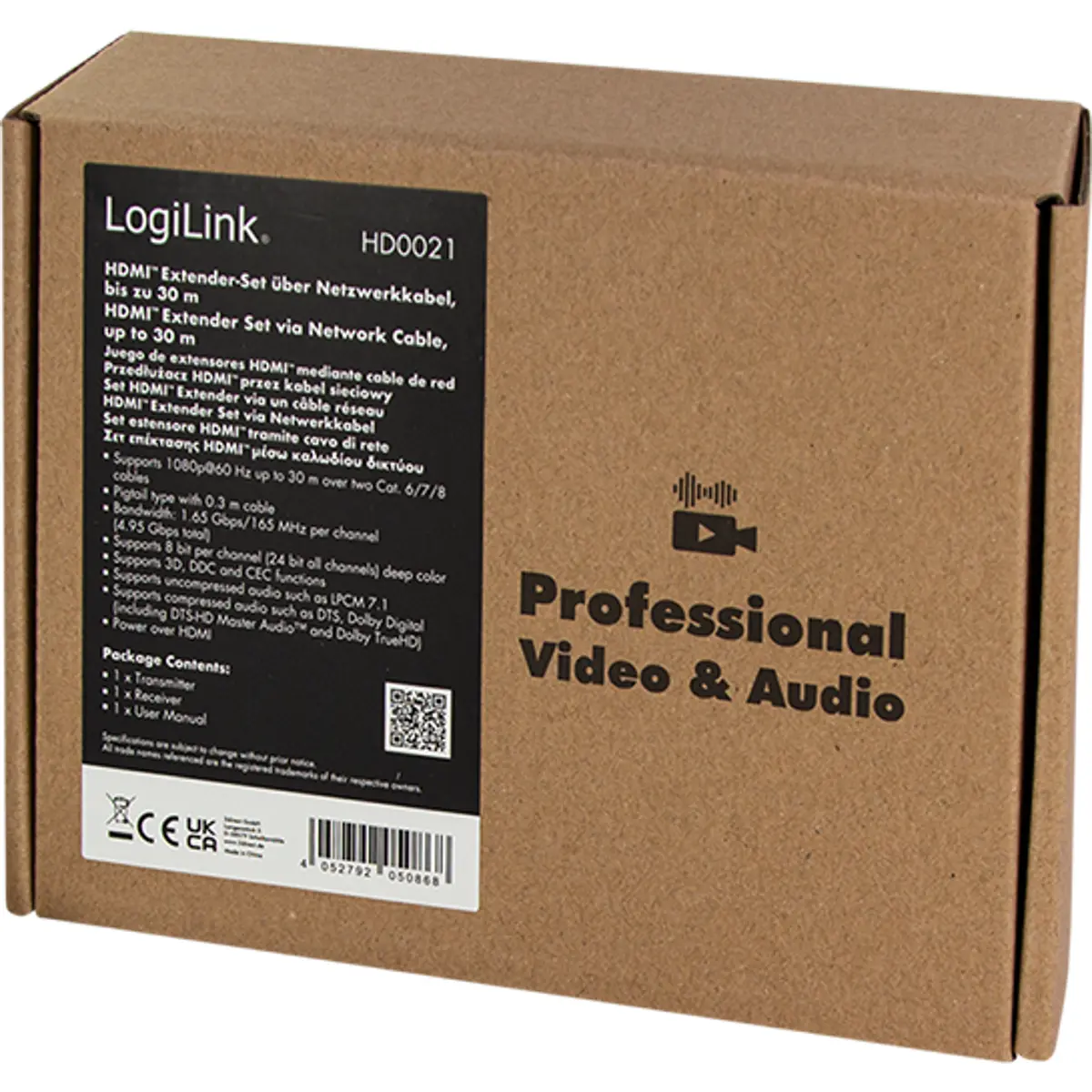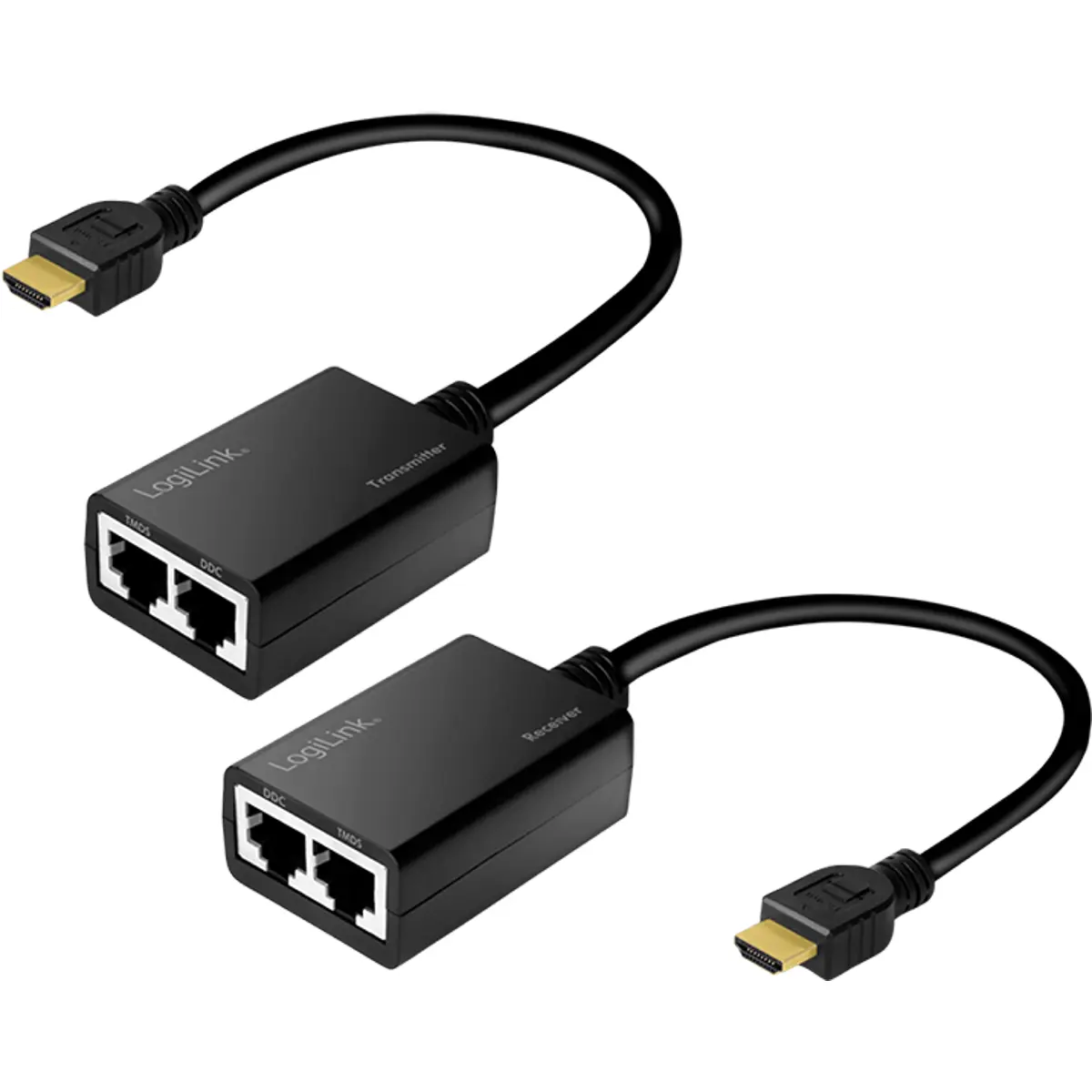 O kit extensor HDMI da LogiLink permite a extensão de sinais HDMI até 30 metros utilizando dois cabos de rede Cat.5e/6/7/8, ideal para aplicações residenciais ou profissionais onde o cabo HDMI tradicional não é viável. Suporta resoluções Full HD até 1080p, áudio comprimido e não comprimido, 3D, HDCP e CEC. A alimentação é fornecida através das portas HDMI dos dispositivos ligados.