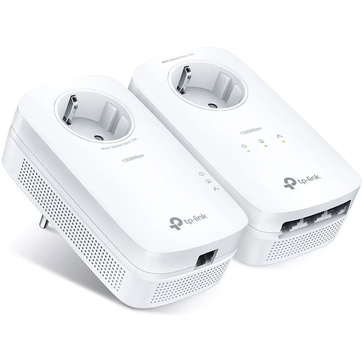 · TL‑PA8030P: 3 × porta Gigabit RJ45 + tomada elétrica