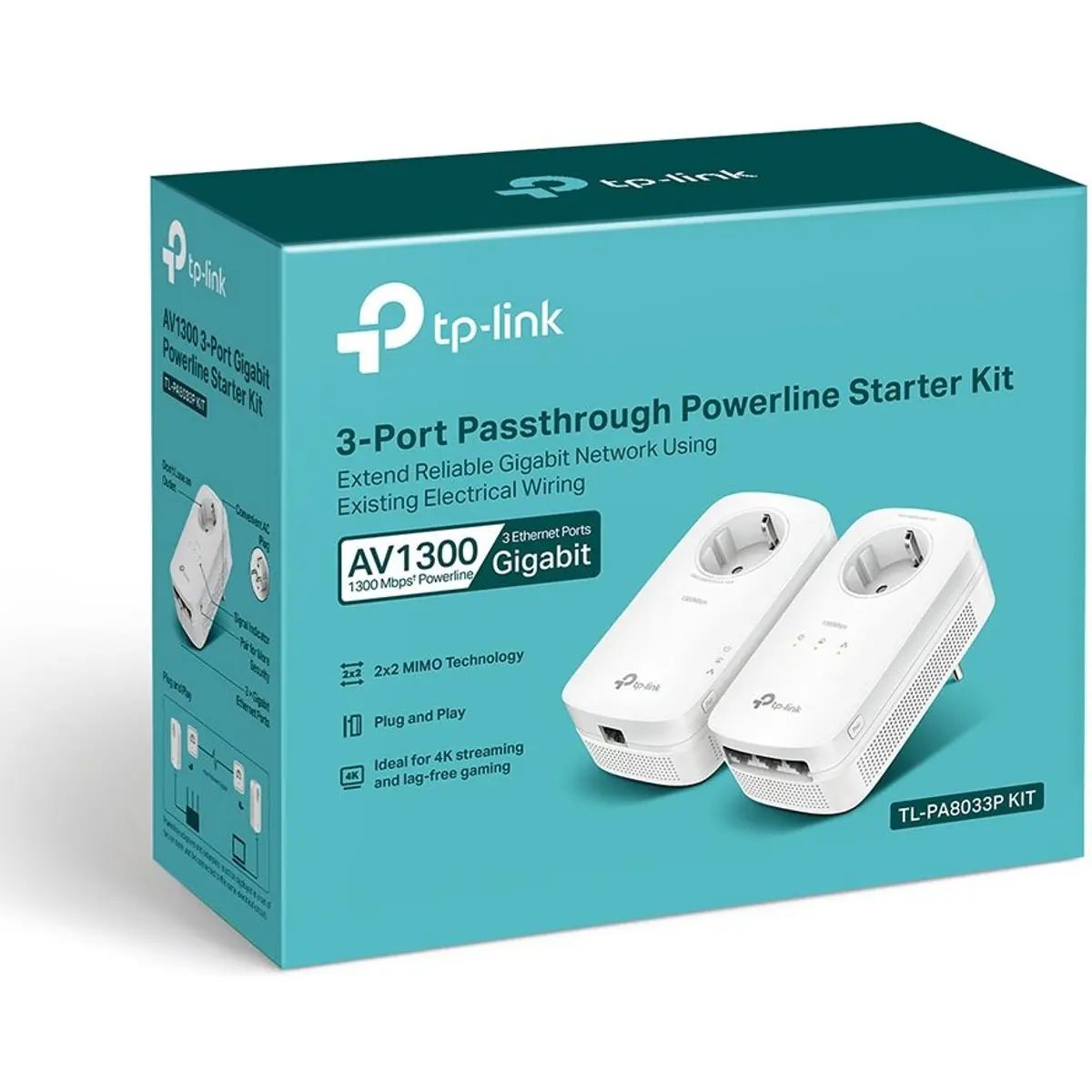 TP-Link TL-PA8033P - Kit 2 adaptadores Powerline 1300 Mbps c/ Passthrough