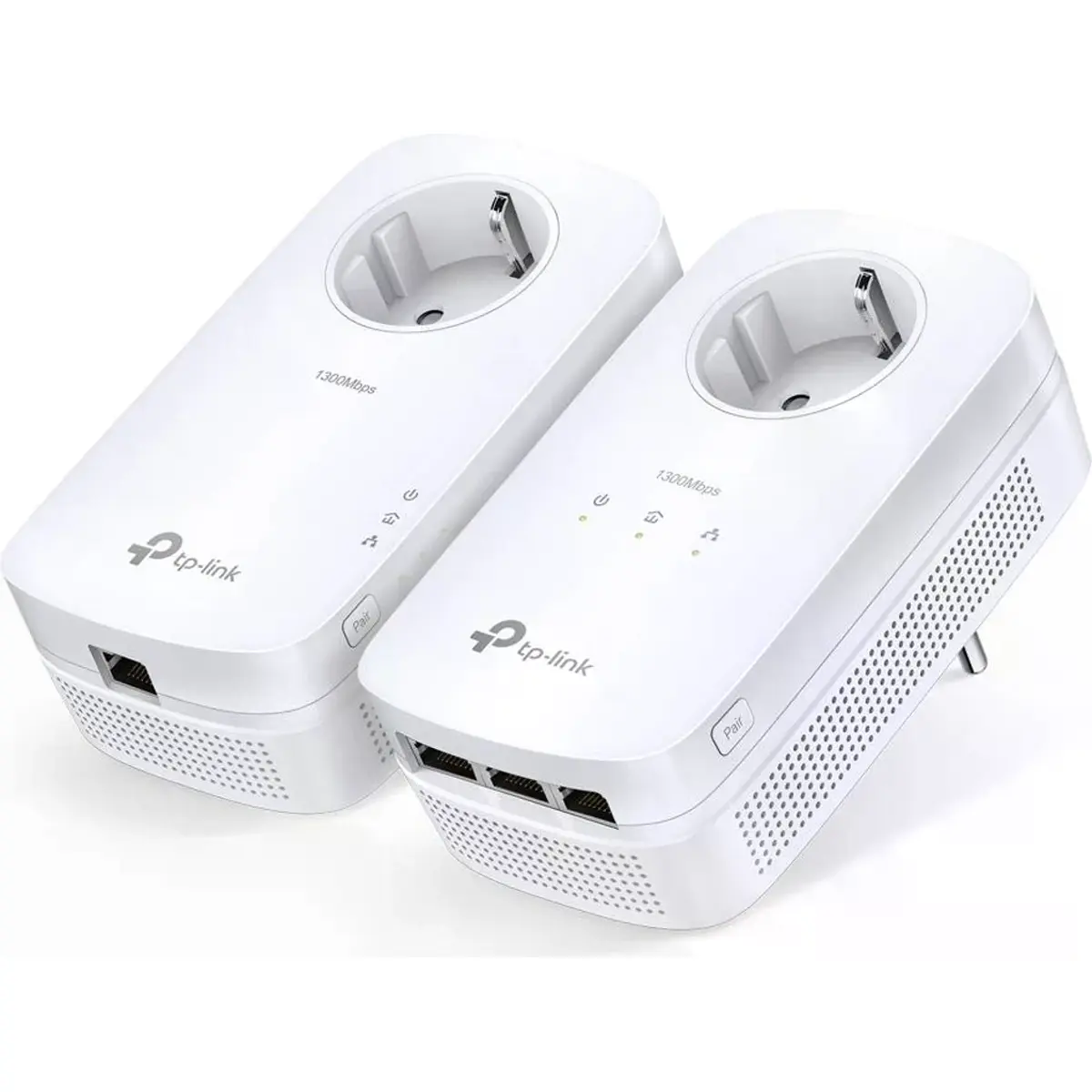 Este kit Powerline transforma a rede eléctrica da casa numa rede de dados rápida, oferecendo ligação Ethernet onde o Wi‑Fi não chega. Com velocidade até 1300 Mbps, utiliza HomePlug AV2 para conectar até três portas Gigabit num adaptador e uma porta no outro, com Passthrough integrado para manter as tomadas disponíveis. Ideal para streaming 4K, jogos online e vários dispositivos, com criptografia AES-128 e modo de economia de energia quando inativo.
