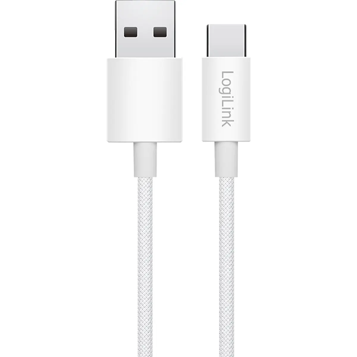 Logilink - Cabo USB-A ➝ USB-C PD 60W c/ revestimento em nylon - Branco - 1.5 m