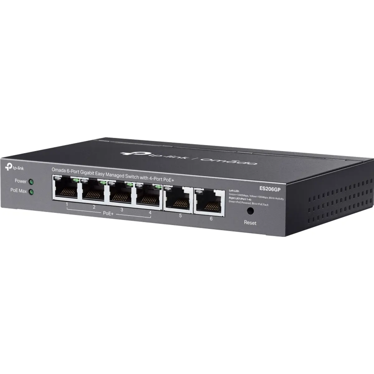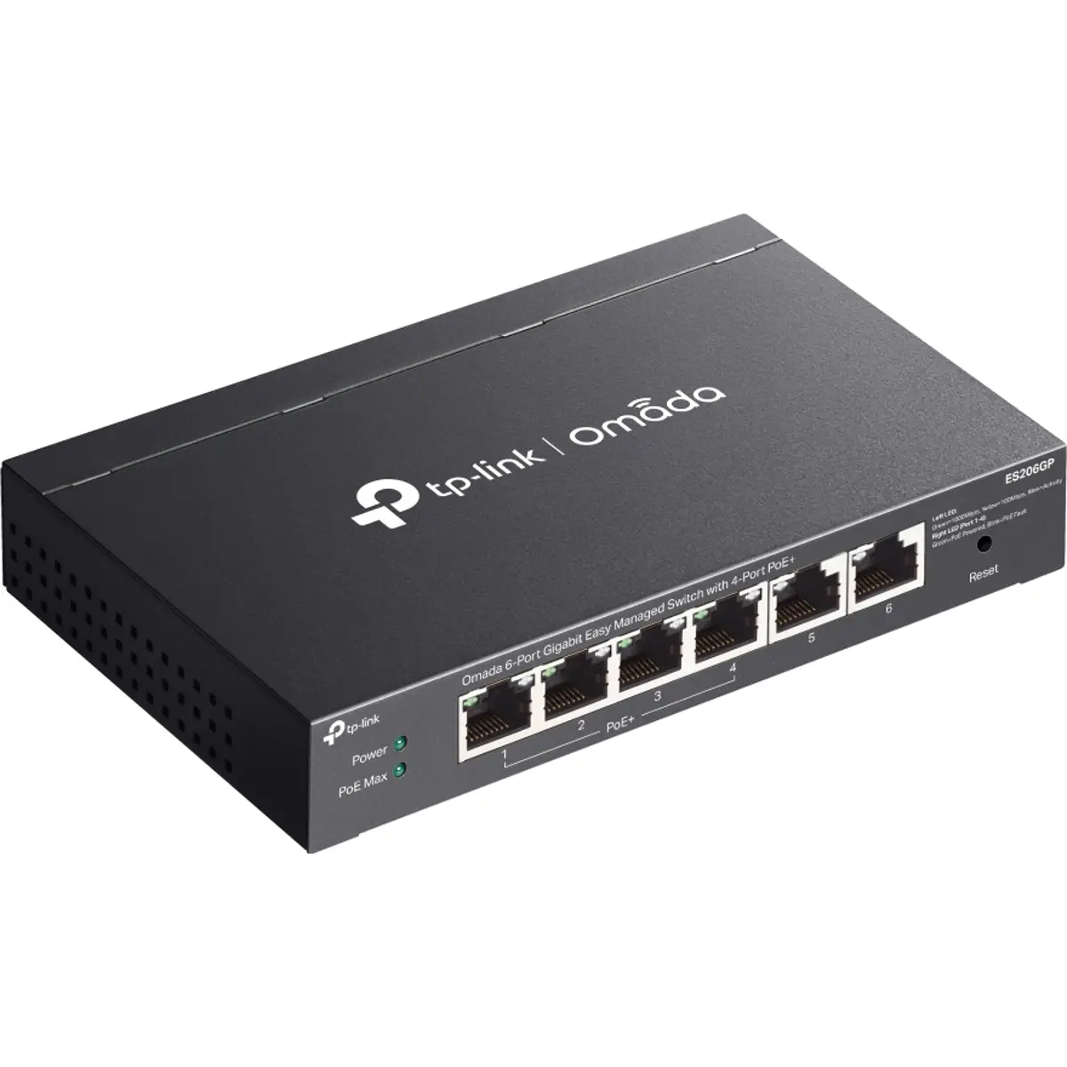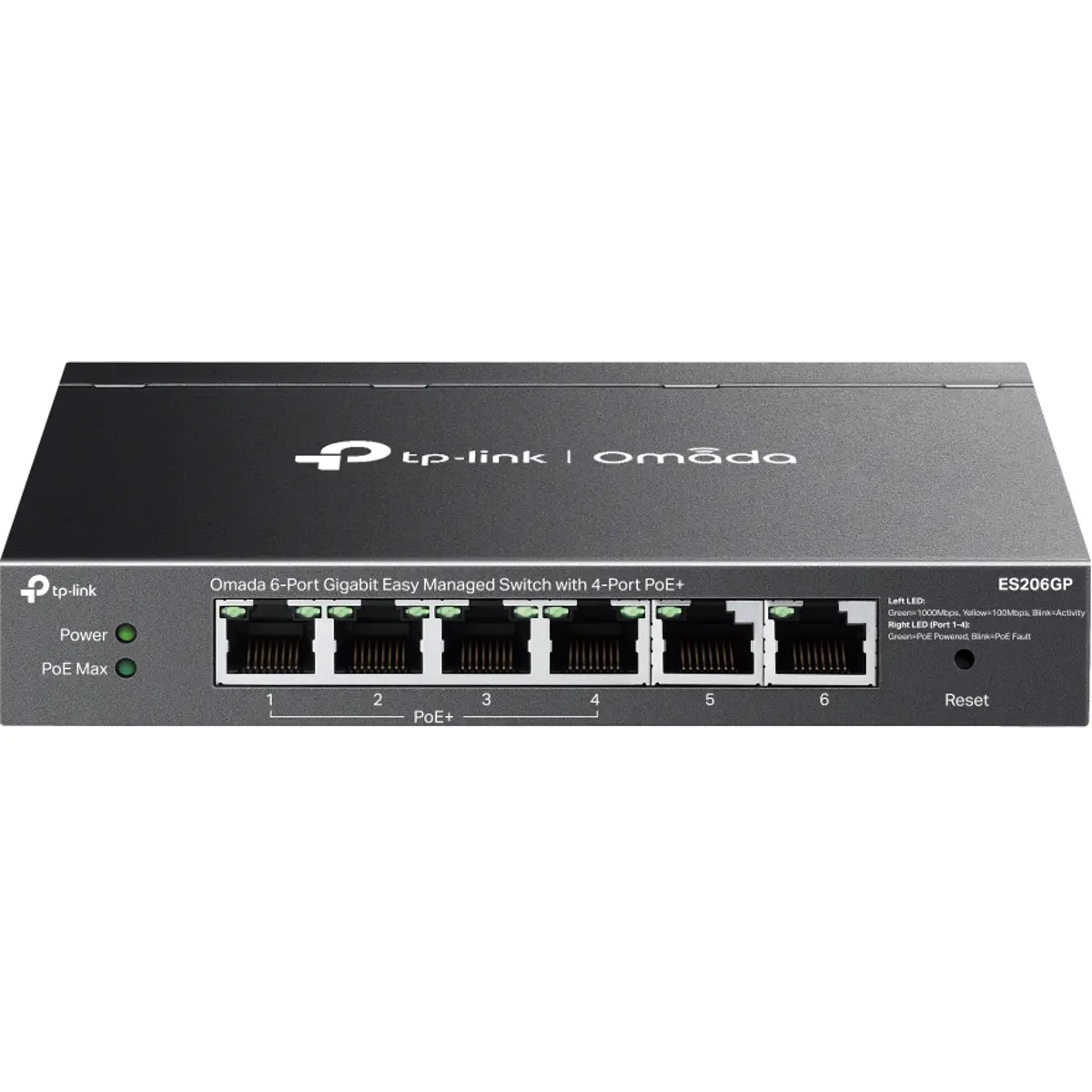 O Omada ES206GP é um switch compacto e eficiente, ideal para pequenas empresas ou redes de vigilância. Oferece 6 portas Gigabit (4 PoE+, conforme os padrões 802.3af/at), com um total de 65 W, permitindo até 30 W por porta. O ES206GP suporta funcionalidades avançadas, como transmissão PoE até 250 m (com redução da velocidade para 10 Mbps), QoS, recuperação automática de PoE (PoE Auto Recovery) e isolamento de portas — tornando-o especialmente eficaz para redes de vigilância. Com instalação simples, ligação plug‑and‑play e sem ventoinha (fanless) para operação silenciosa, oferece possibilidade de montagem em secretária ou parede.