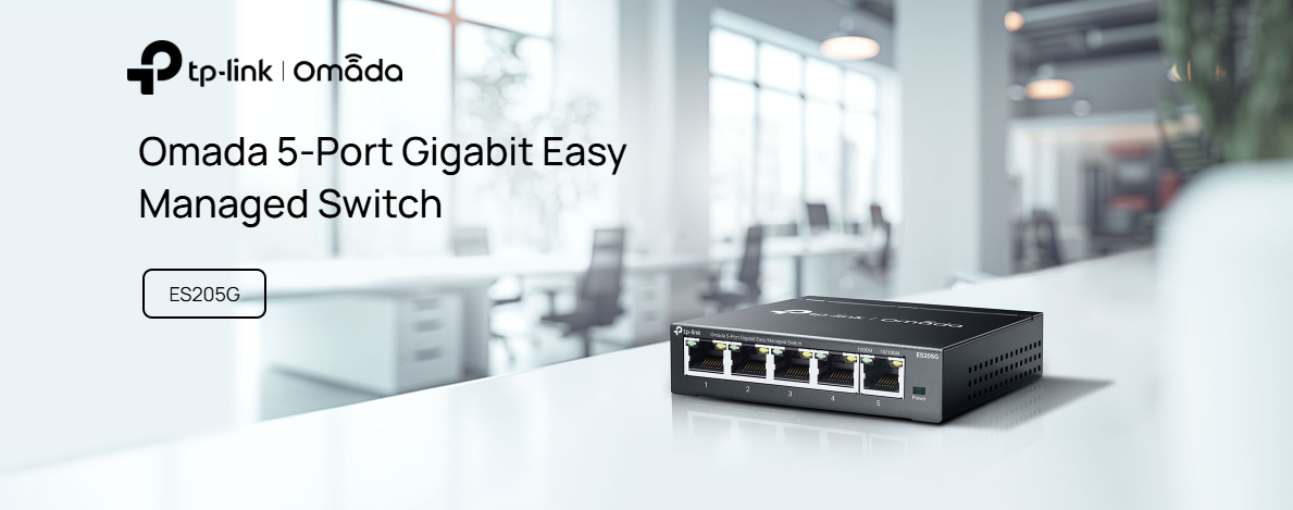 O Omada ES205G é um switch gerenciável de 5 portas, ideal para pequenas redes empresariais ou de videovigilância que procuram simplicidade aliada a funcionalidades de nível profissional. Com instalação plug-and-play, estrutura metálica e funcionamento silencioso, oferece opções de gestão centralizada via a plataforma Omada SDN, compatível com gestão na cloud, web ou através da aplicação móvel. O ES205G inclui recursos essenciais como prevenção de loops, VLAN e IGMP Snooping, garantindo eficiência e segurança na rede.