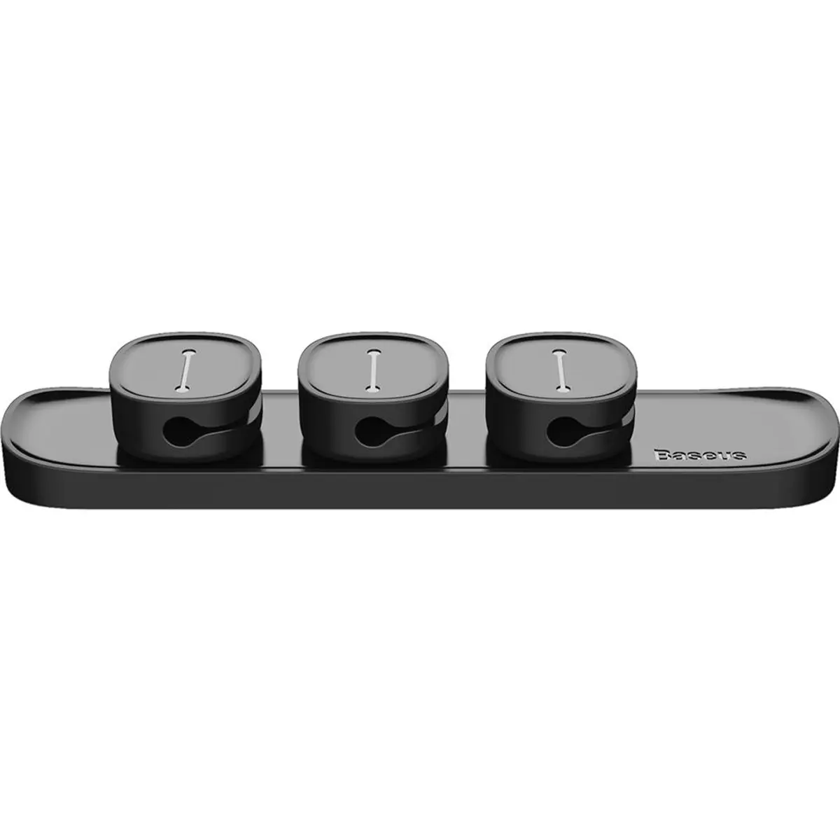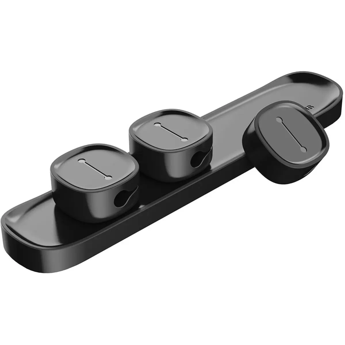 Organizador de cabos prático e discreto, com um sistema magnético de três clips que se ligam a uma base magnetizada, permitindo manter vários cabos no lugar sem que estes caiam ou se misturem. A base pode ser facilmente fixada a qualquer superfície lisa através de um adesivo forte, reutilizável, que não deixa marcas.