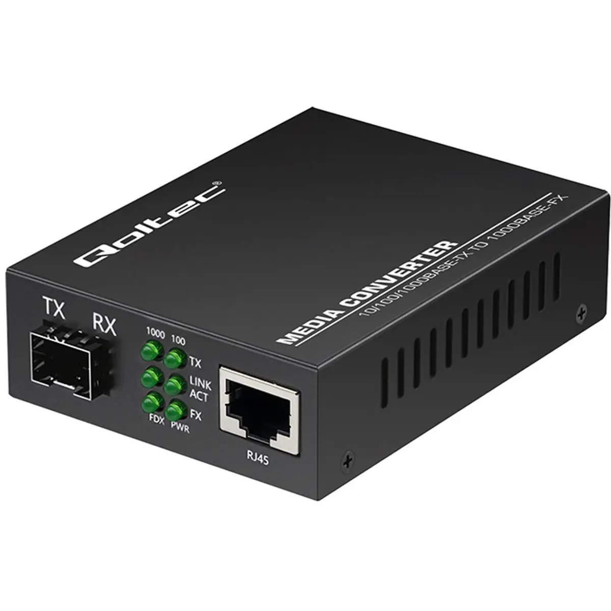 Este conversor de média bidirecional da Qoltec permite a transmissão de sinal Ethernet 10/100/1000Base-TX através de fibra ótica 1000Base-FX, garantindo uma ligação estável, rápida e resistente a interferências eletromagnéticas. Ideal para infraestruturas de rede empresariais, salas de servidores e sistemas de monitorização, oferece desempenho fiável e instalação imediata em modo Plug & Play.