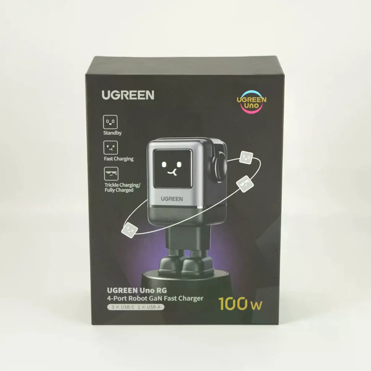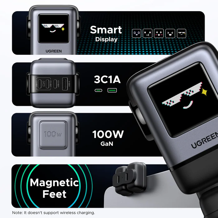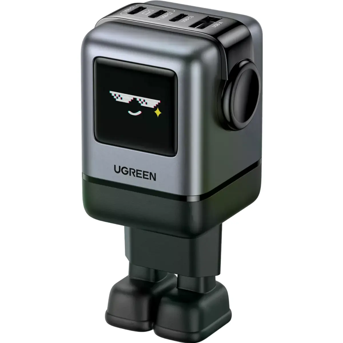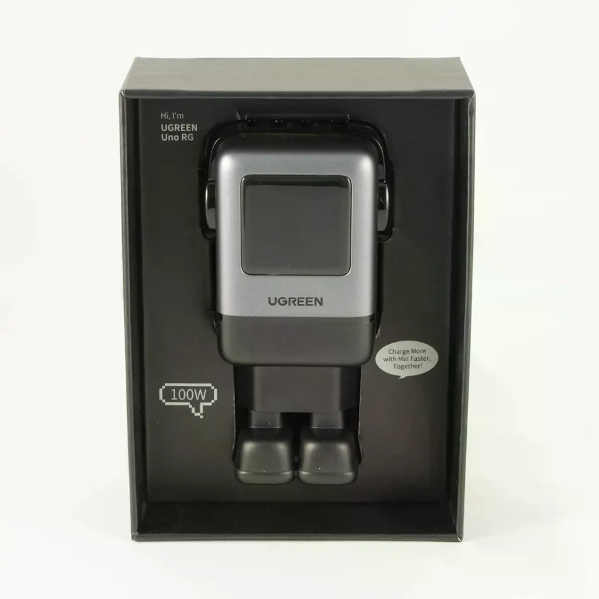 O UGREEN Nexode RG 100W combina tecnologia de carregamento rápido GaN com um design inovador e divertido em forma de robô. Projetado para oferecer potência, eficiência e um toque de originalidade, este carregador é ideal para quem procura desempenho máximo aliado a uma estética moderna. O ecrã TFT animado exibe expressões diferentes consoante o estado de carregamento, tornando cada utilização mais interativa e visualmente apelativa. Os “pés” magnéticos permitem fixá-lo facilmente ao portátil, para manter o UGREEN Uno sempre à mão. O carregamento rápido de 100W, com tecnologia GaN de alta eficiência, permite carregar um MacBook Pro 16” até 43% em apenas 30 minutos ou um iPhone 15 até 55%, via USB-C, com os dois ligados ao mesmo tempo. Oferece carregamento simultâneo de 4 dispositivos, com 3 portas USB-C e 1 porta USB-A, fornecendo energia rápida e estável para portáteis, smartphones, tablets e outros dispositivos. Este pequeno robô Uno de 100W está munido de 8 níveis de proteção: inclui chip PWM e chip de retificação síncrona para máxima eficiência energética, com proteção contra sobretensão, sobrecorrente, sobrecarga, curto-circuito, sobreaquecimento e outros riscos elétricos. É compatível com uma ampla gama de dispositivos, incluindo iPhone 8–16, Samsung Galaxy S10–S24, Google Pixel 6–8, MacBook Air/Pro, iPad Pro/Air/mini, Apple Watch, AirPods Pro, HomePod e muitos mais.