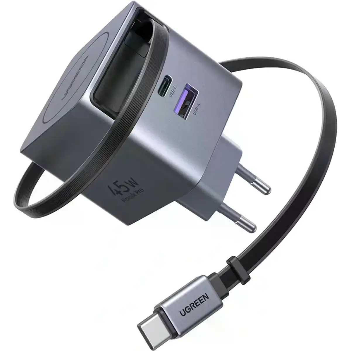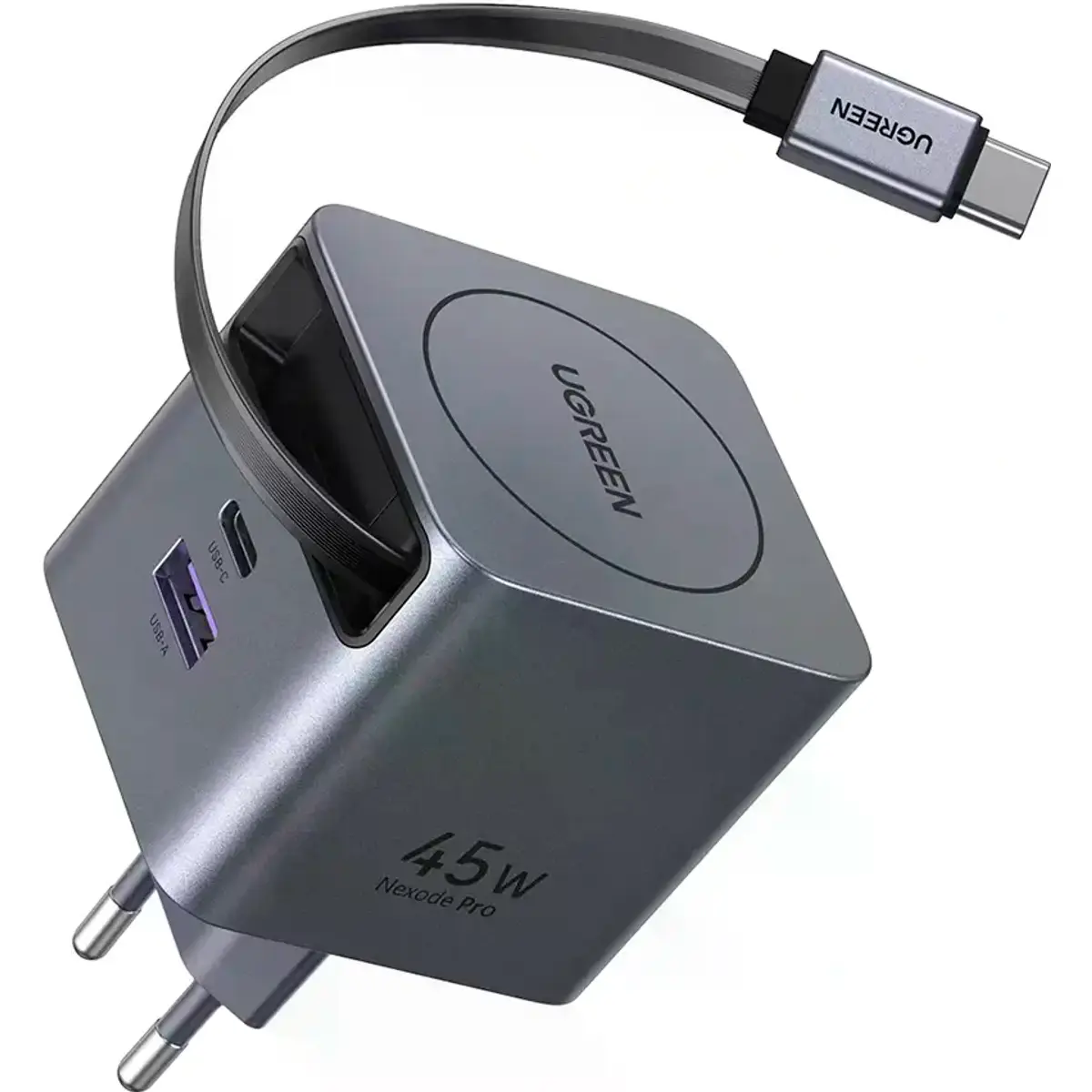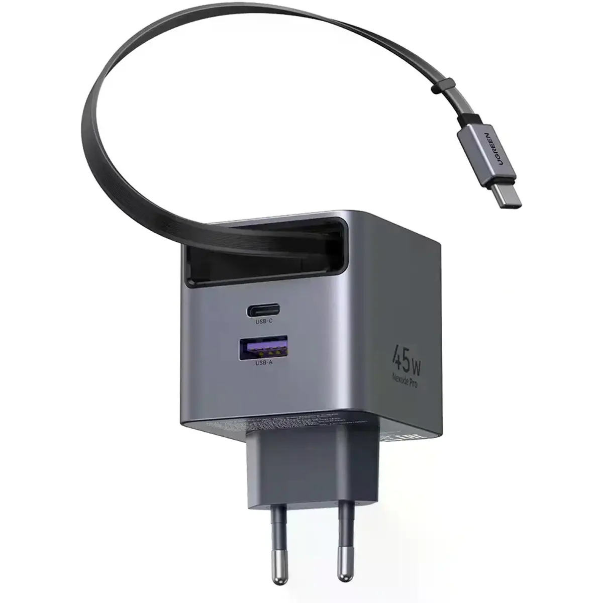 O UGREEN Nexode Pro 45W combina carregamento rápido, eficiência energética e portabilidade num design elegante. Equipado com tecnologia GaN (Nitreto de Gálio), proporciona carregamento potente com menor aquecimento e maior eficiência, ideal para casa, escritório ou viagens.