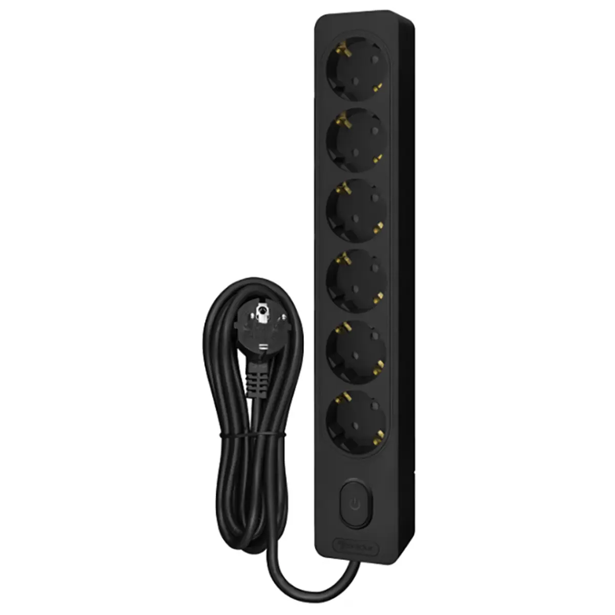 Graças ao cabo de cinco metros de comprimento, este bloco de seis tomadas Schuko, permite ligar equipamentos dentro de um vasto leque de distâncias. Para maior segurança, está equipado com interruptor on/off.
