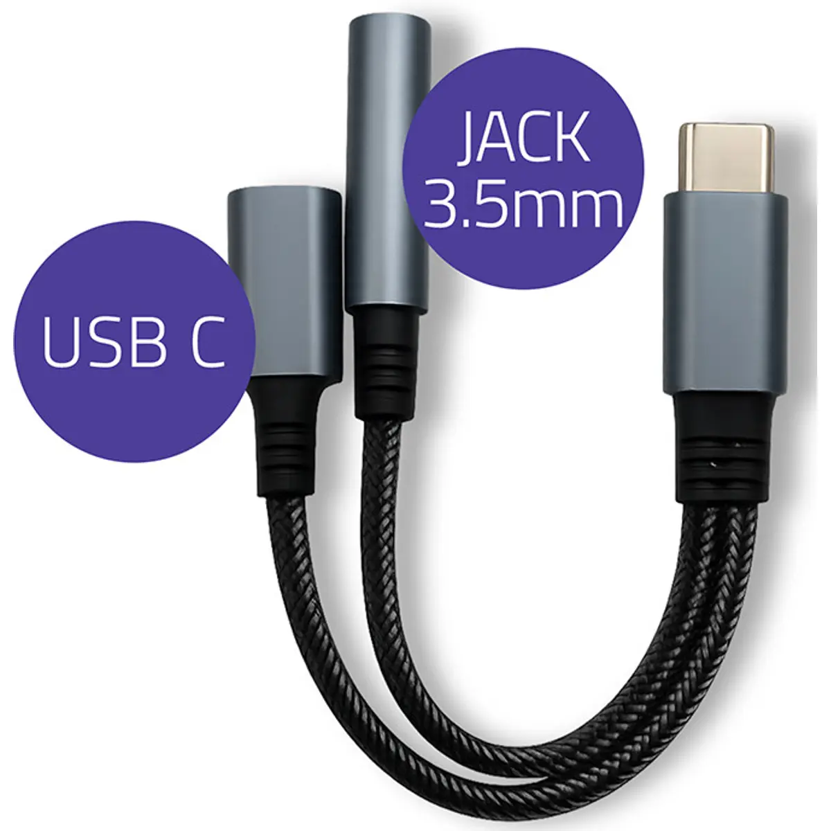 - Tipo de conector: USB-C macho para Jack 3,5 mm fêmea (4 pinos)