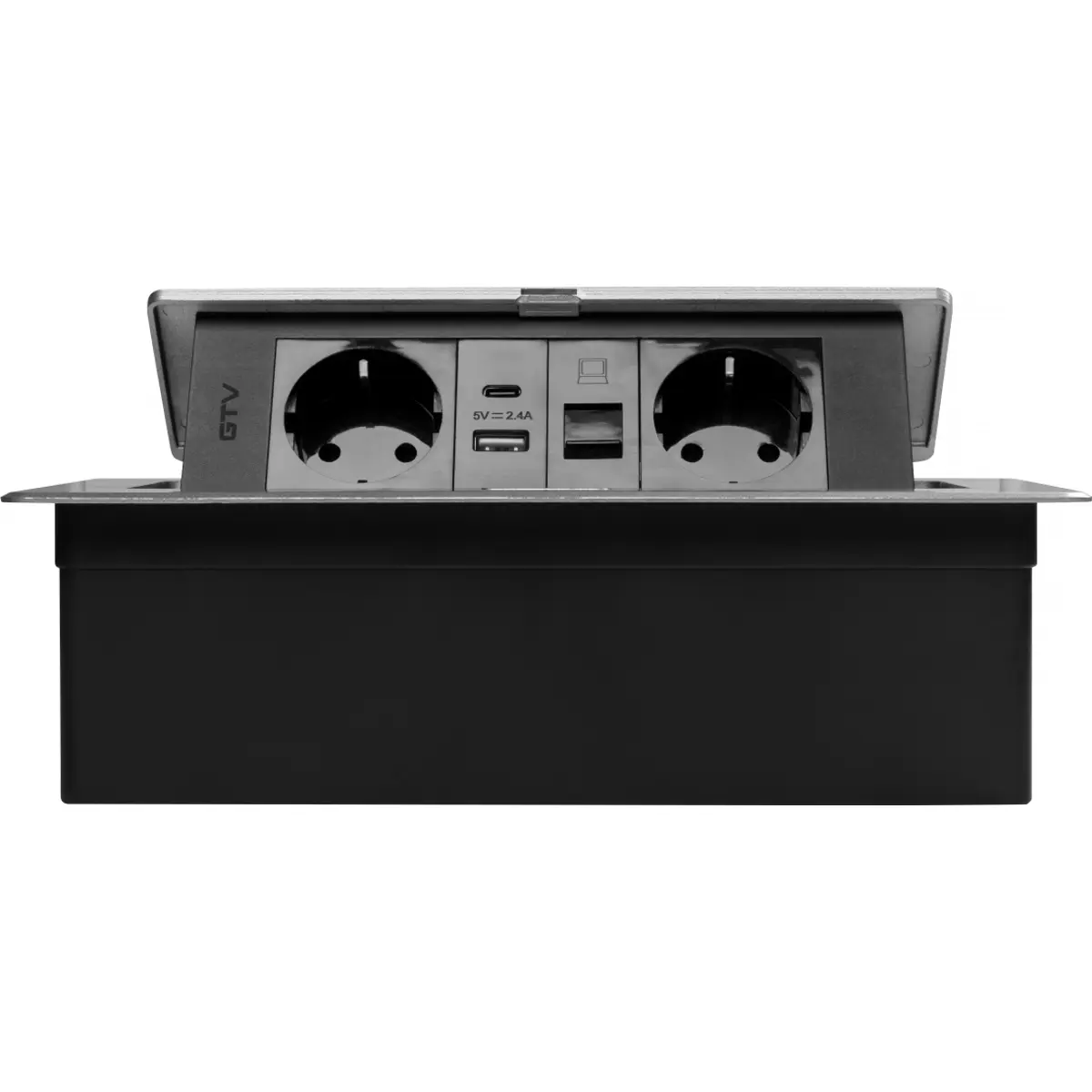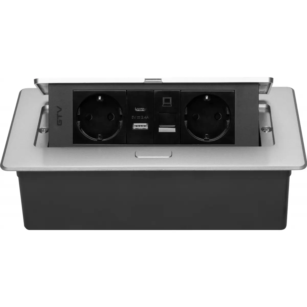 GTV Lighting MULTISOFT - Bloco de tomadas de encastrar com tampa 2x Schuko + USB-A + USB-C + RJ45 – cabo 1.5m – Alumínio