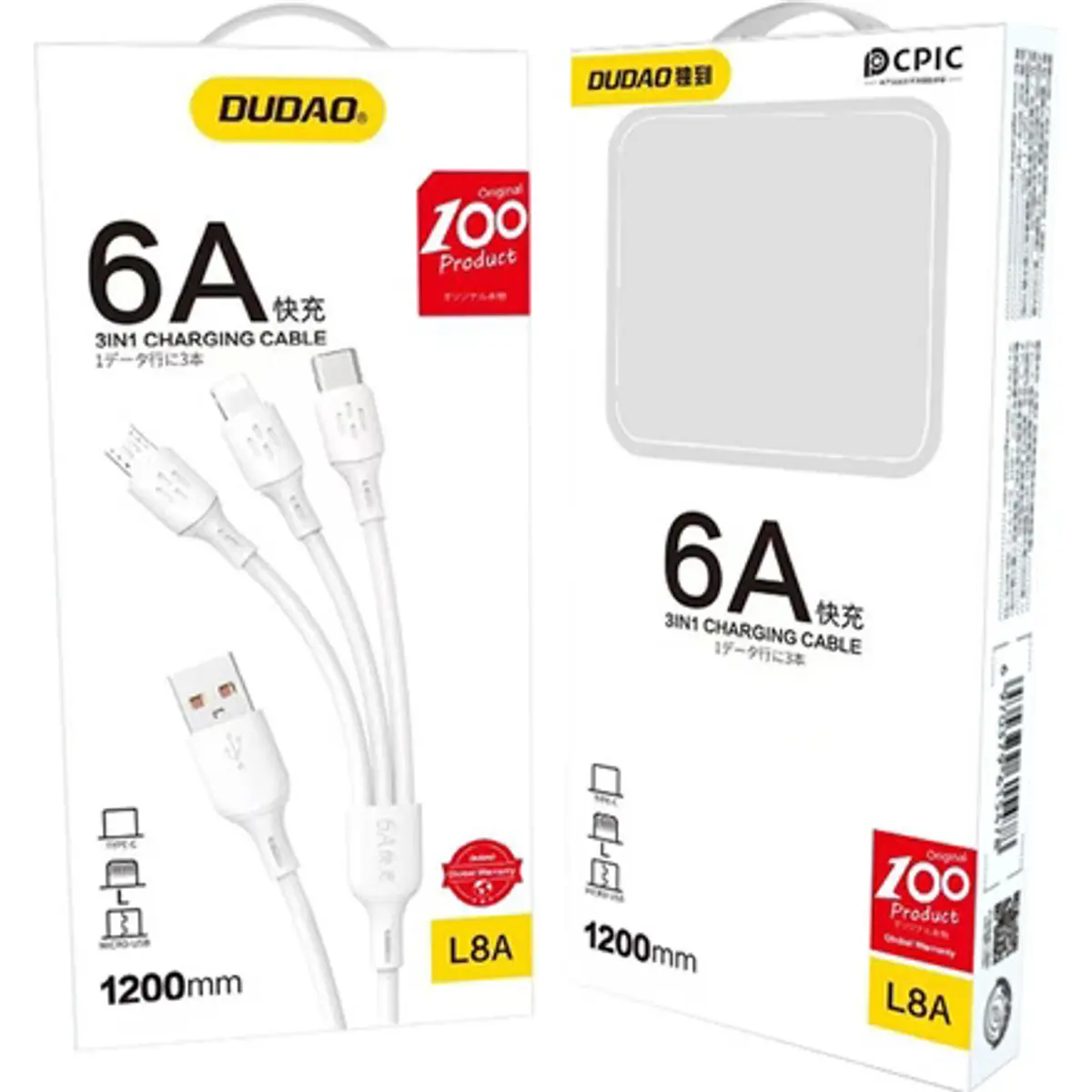 DUDAO - Cabo 3-em-1 (USB-A ➝ USB-C + Micro-USB + Lightning) 480Mbps - 1.2 m - branco
