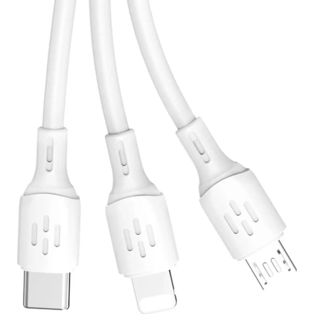 O Dudao 3-em-1 é um cabo multifunções pensado para quem quer versatilidade e compatibilidade em apenas um acessório, eliminando a necessidade de vários cabos diferentes para cada dispositivo. Com um conector USB-A num lado e três conectores (USB-C, Micro-USB e Lightning) nas outras extremidades, é ideal para carregar ou sincronizar telemóveis, tablets, auscultadores, powerbanks e outros gadgets com diferentes portas.