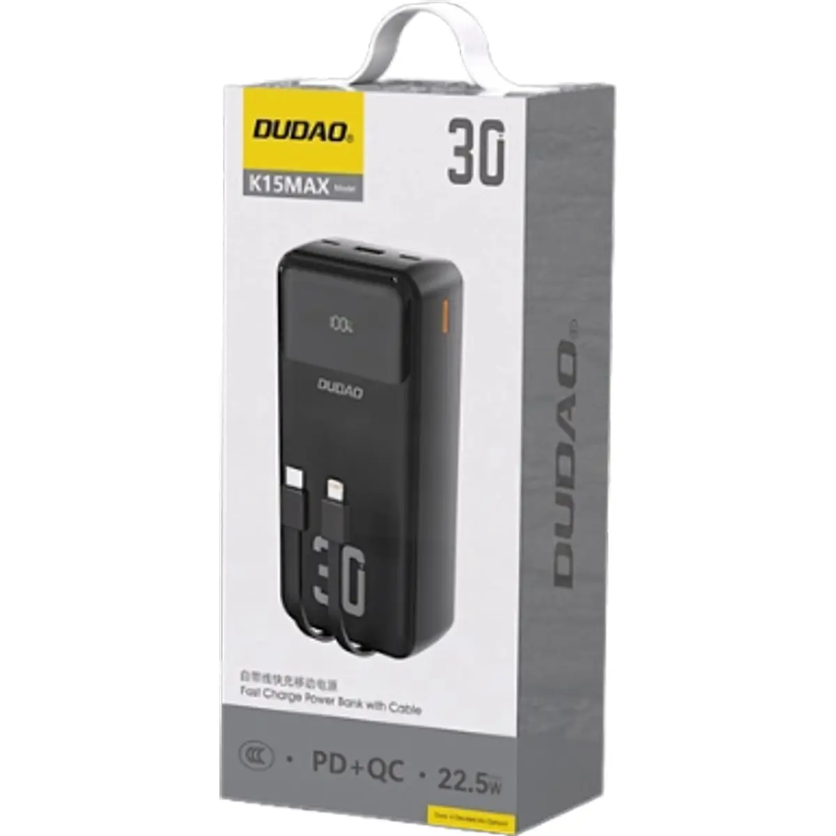 DUDAO K15MAX - Powerbank 30000mAh PD 22.5W (2x USB-C + USB-A) c/ cabos USB-C + Lightning - preto
