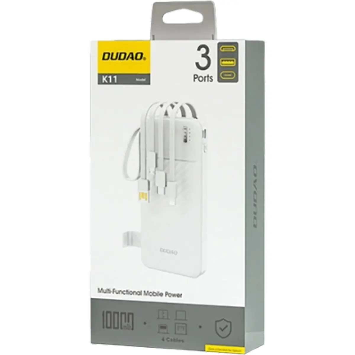 DUDAO K11 - Powerbank 10000mAh c/ 3 portas + 4 cabos (USB-A + USB-C + micro-USB + Lightning) + lanterna - branco