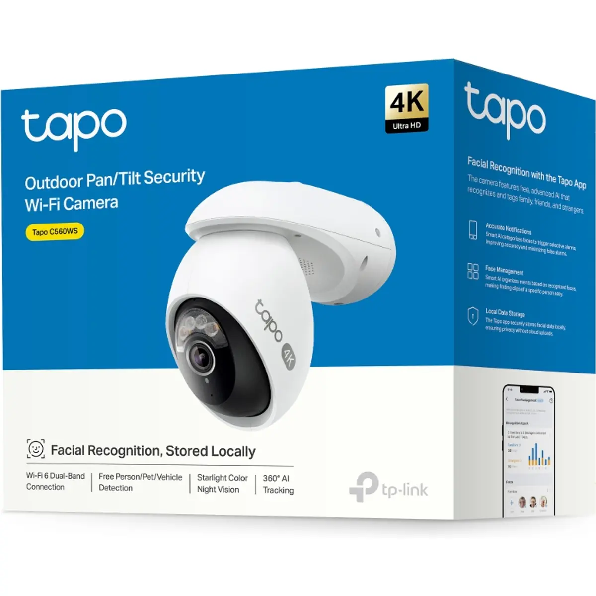 A TP-Link Tapo TC46 é uma câmara de segurança IP Wi-Fi com funções pan/tilt, concebida para vigilância avançada, tanto no interior como no exterior. Combina resolução 4K Ultra HD (8 MP) com tecnologia de inteligência artificial integrada para melhorar desempenho e segurança.