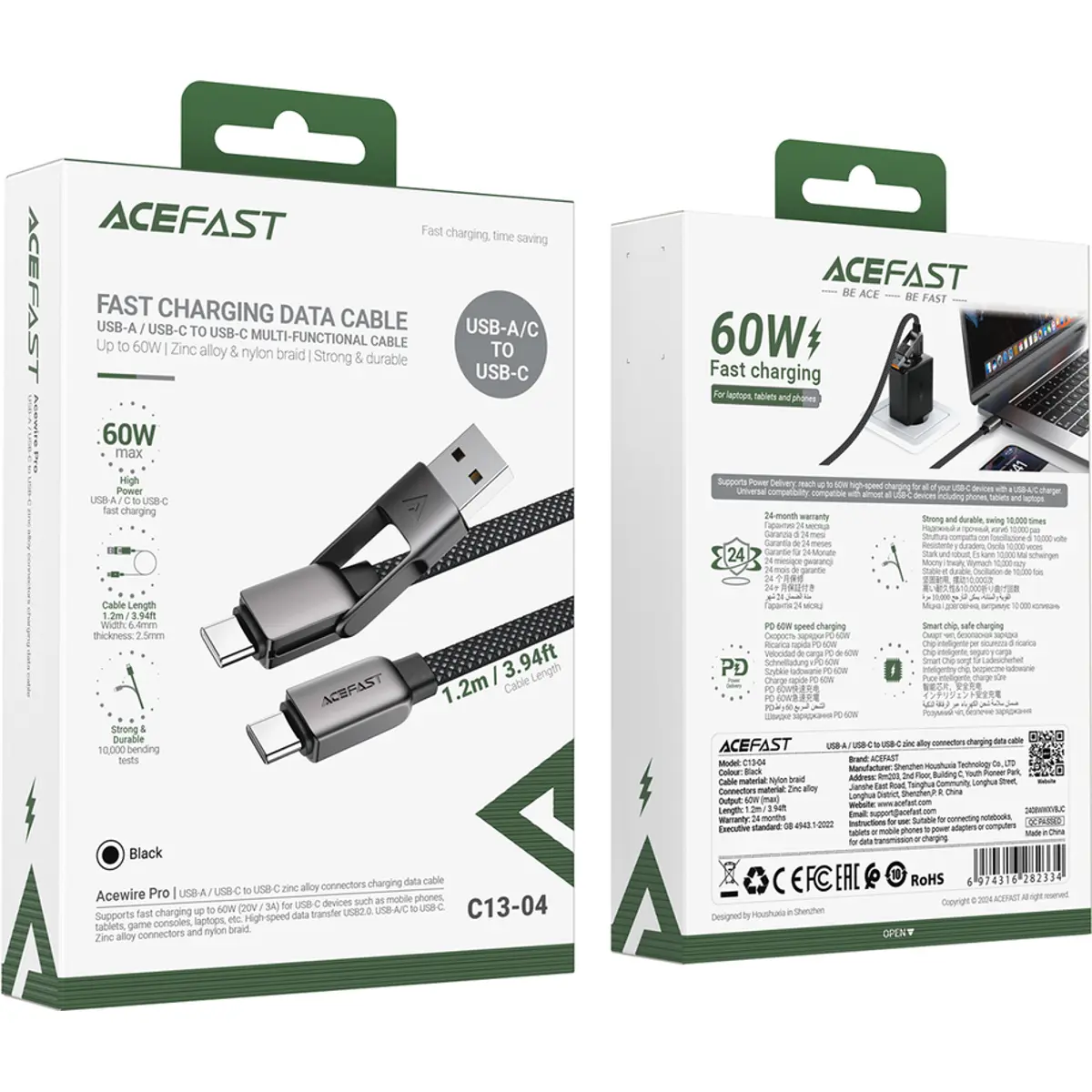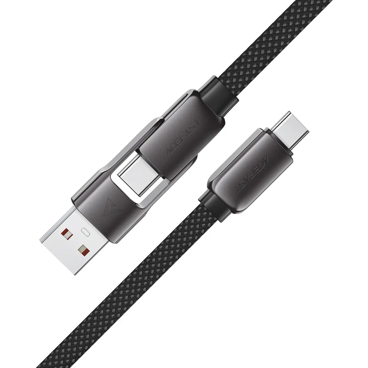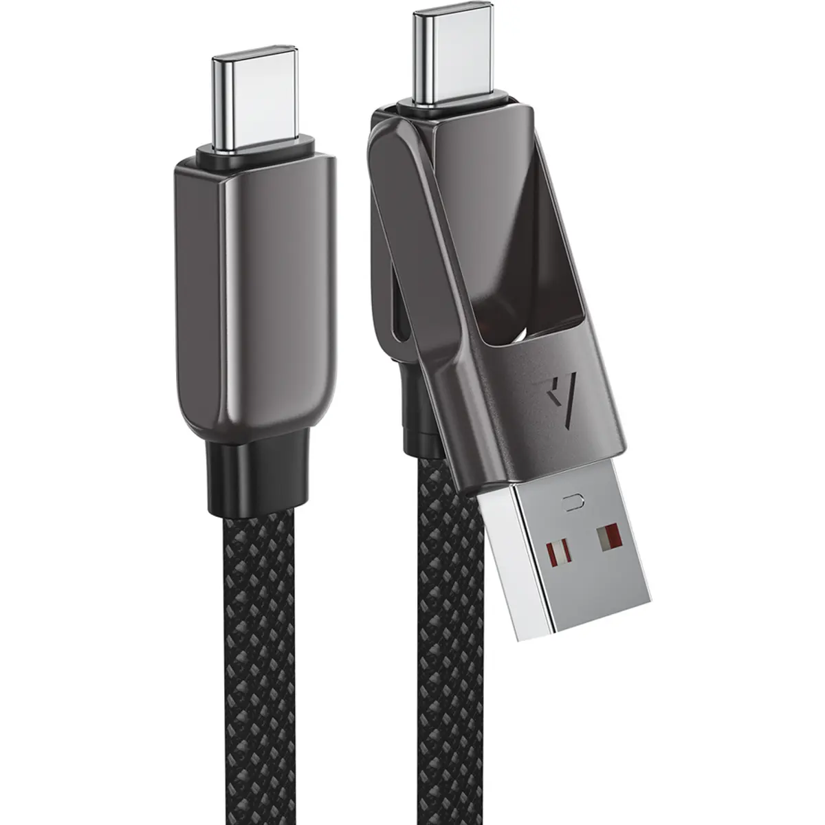 Cabo versátil e durável, compatível com portas USB-A e USB-C, ideal para carregamento rápido e transferência de dados estável. Estrutura resistente protege contra torções e uso diário, garantindo longa durabilidade. Certificações CE, RoHS, FCC e EAC confirmam qualidade e segurança.