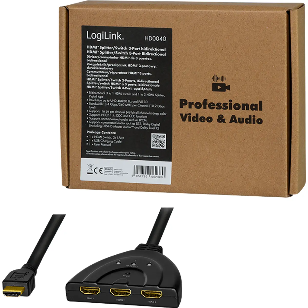 O LogiLink HD0040 é um switch HDMI bidirecional de alto desempenho que oferece uma flexibilidade total na gestão de sinais de vídeo 4K. Este dispositivo inteligente permite alternar entre três fontes HDMI para um único ecrã, ou distribuir uma fonte HDMI por um de três ecrãs à escolha. Compatível com resoluções UHD 4K a 30 Hz e formatos Full 3D, garante uma transmissão de sinal sem perdas, mantendo a integridade da imagem e do som. Com suporte para áudio multicanal de alta definição e conformidade com as normas HDCP e CEC, é a solução ideal para integrar consolas de jogos, leitores Blu-ray ou sistemas de receção digital em qualquer configuração multimédia moderna.