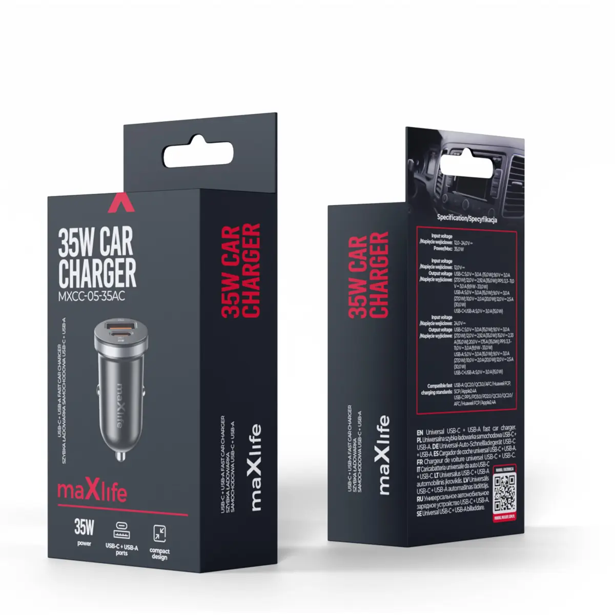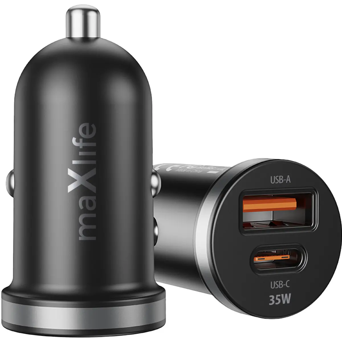 Maxlife MXCC-05 - Carregador de Isqueiro (12..24VDC) USB-A QC + USB-C PD 35W