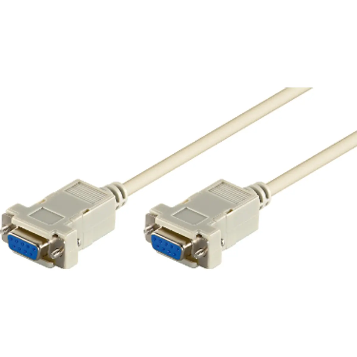 Cabo serial RS-232 cruzado com conectores D-SUB de 9 pinos fêmea a fêmea, comprimento de 2 m, construção em PVC, cor marfim e condutor CCS níquelado. Ideal para ligações entre dispositivos que usam RS-232, como computadores, modems e equipamentos de controlo, oferecendo transmissão bidirecional estável e compatível com os padrões RS-232. A cablagem cruzada facilita a comunicação entre equipamentos, sem necessidade de adaptadores, mantendo fiabilidade e durabilidade.