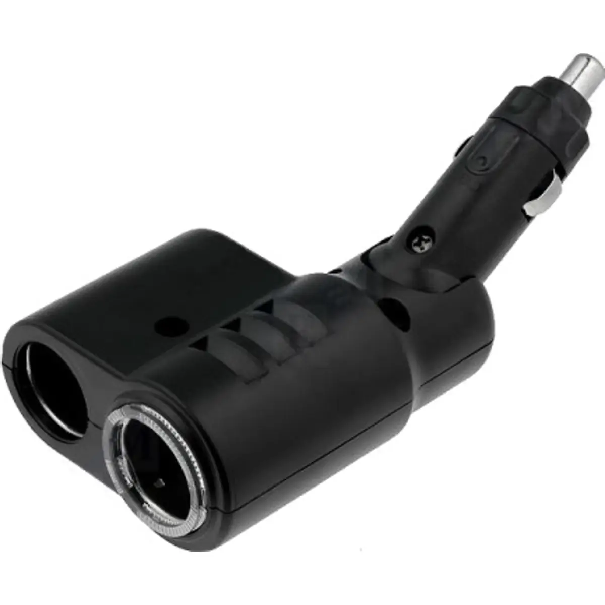 Adaptador para isqueiro com duas saídas 12VDC e 10A, fabricado em ABS, peso 100 g. Permite alimentar dispositivos que operam a 12V DC, oferecendo uma solução compacta e segura para acessórios elétricos que exigem até 10A, útil em veículos e outras aplicações com tomada de 12V.