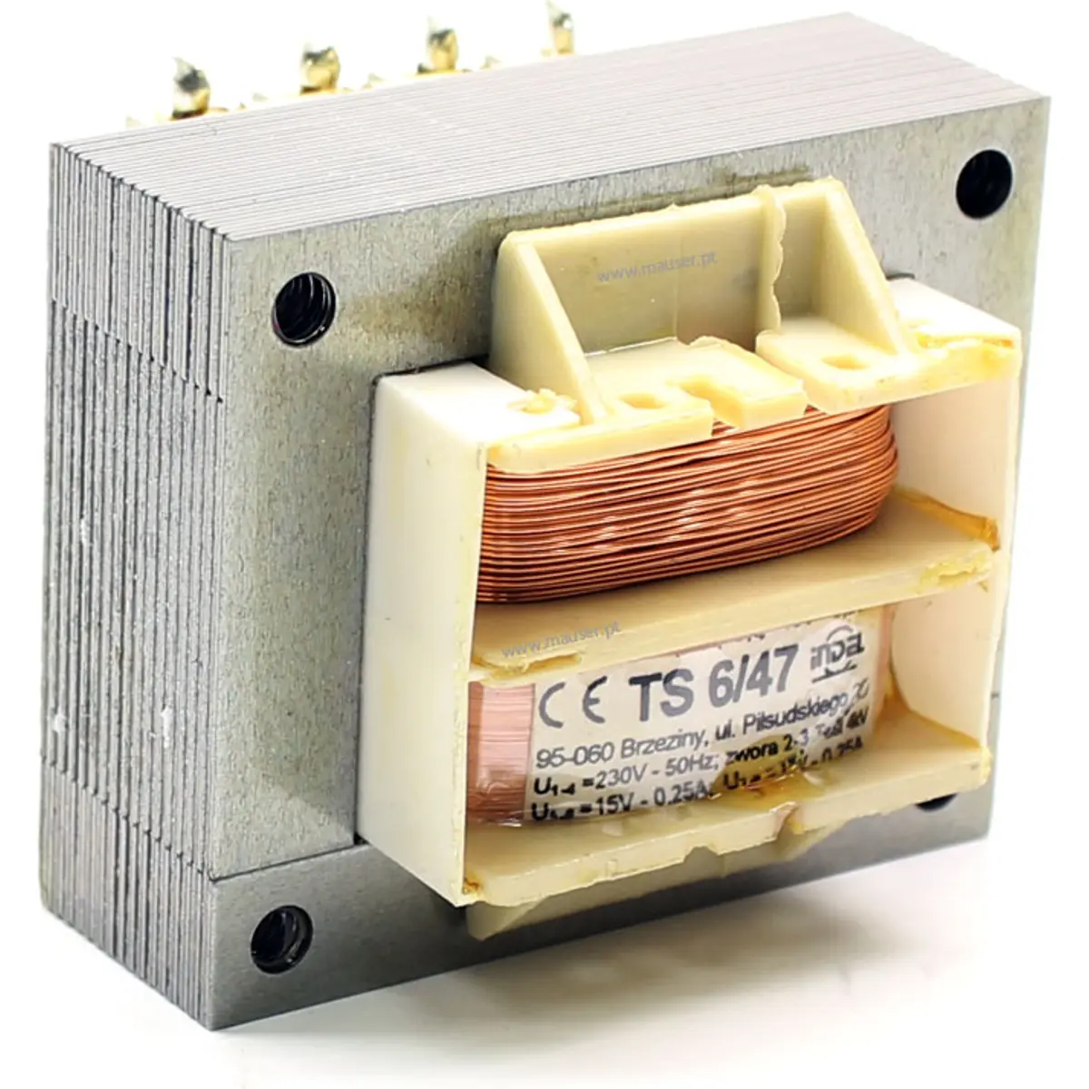 Transformador convencional 230/15+15V 6VA 0.25+0.25A - Indel TS6/47.